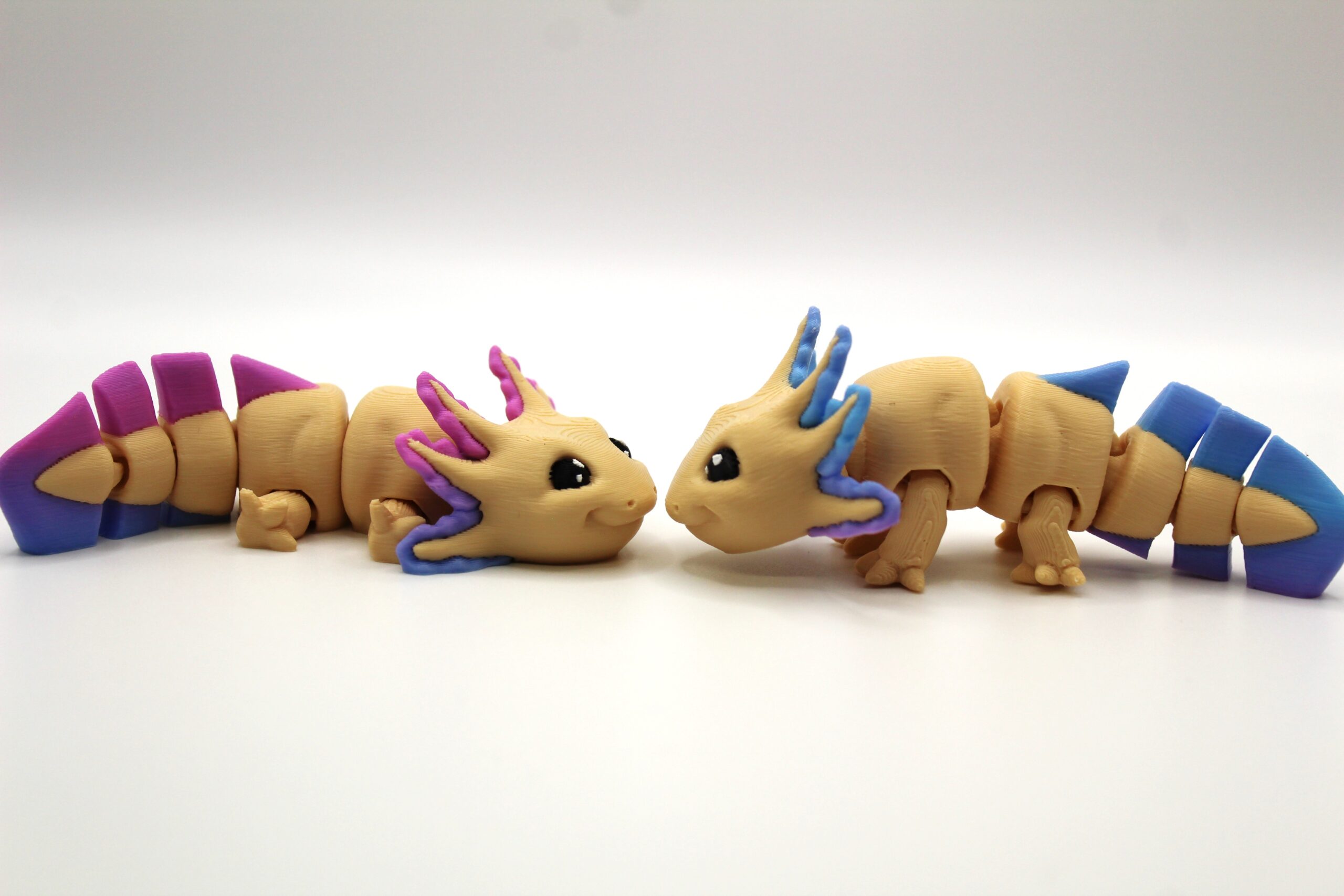 Introducing Pocket Pets – ‘Axolotl’ by MatMire Makes! These cuties are the perfect addition to your collection of adorable critters. With their cream-colored bodies and pastel pink to blue fade accents, they’ll bring a smile to your face every time you see them. Articulated joints allow them to be posed or just to simply curl up in your pocket, safe and sound. Get ready to fall in love with these charming little axolotls!