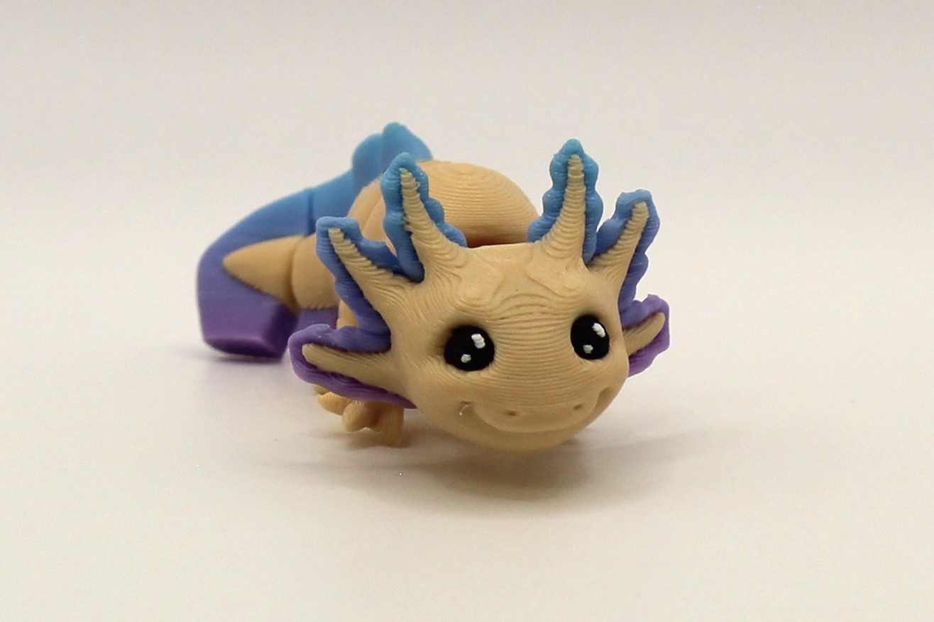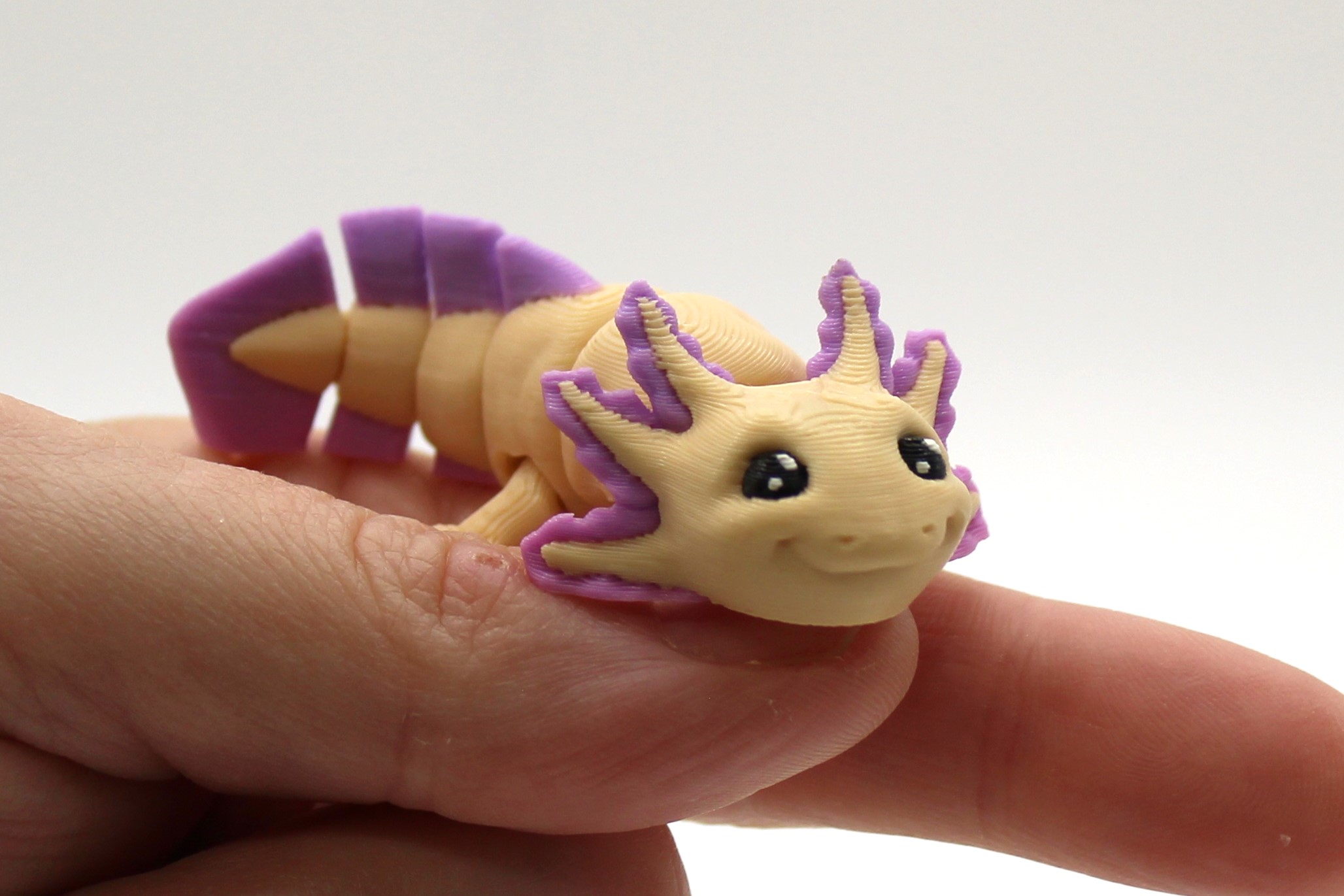 Introducing Teeny Weeny’s ‘Axolotl’ by MatMire Makes! This adorable tiny axolotl figurine is the perfect addition to your collection. With its unique pink to blue rainbow frills, this little guy is sure to bring a smile to your face. Get yours today and add some whimsy to your life!