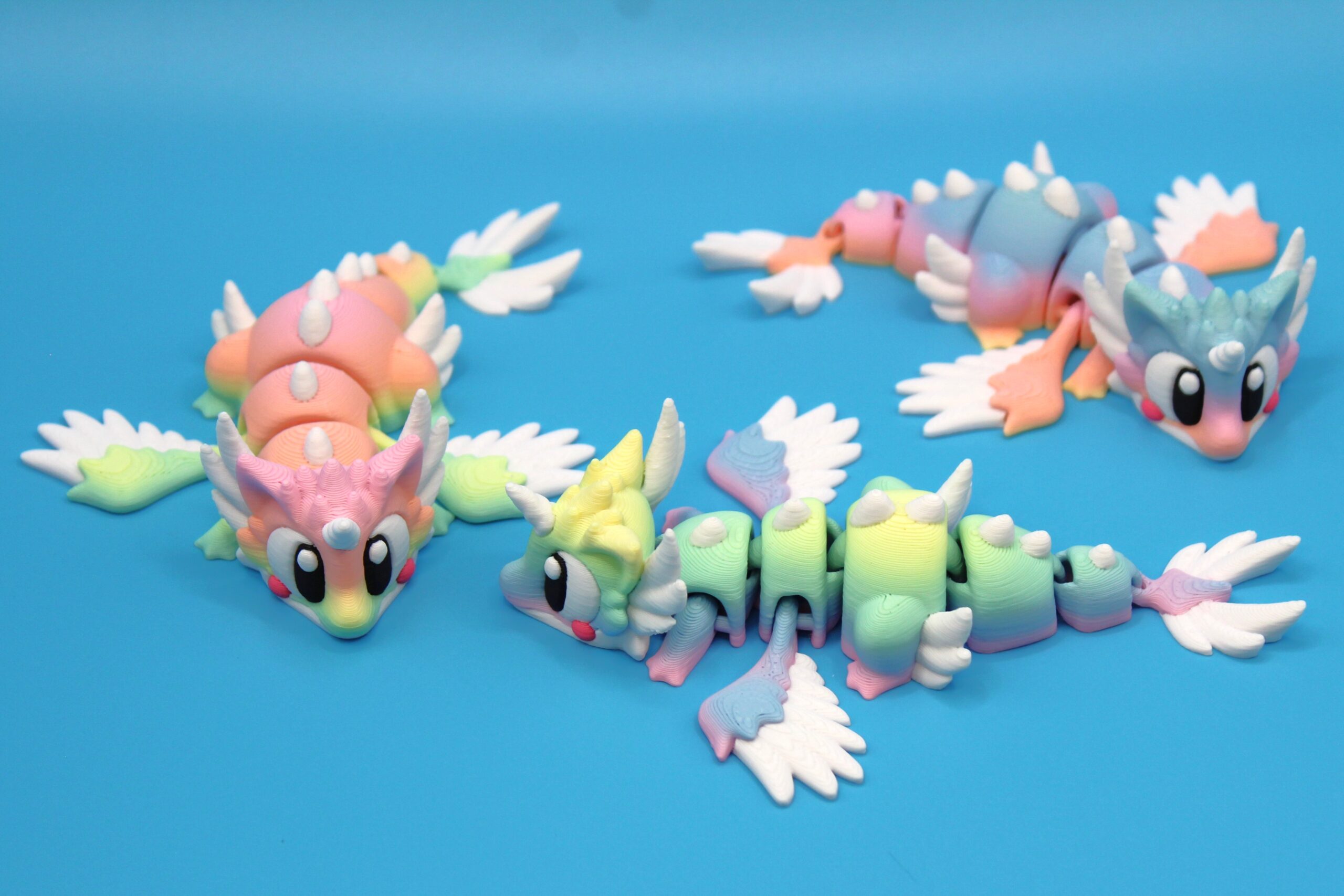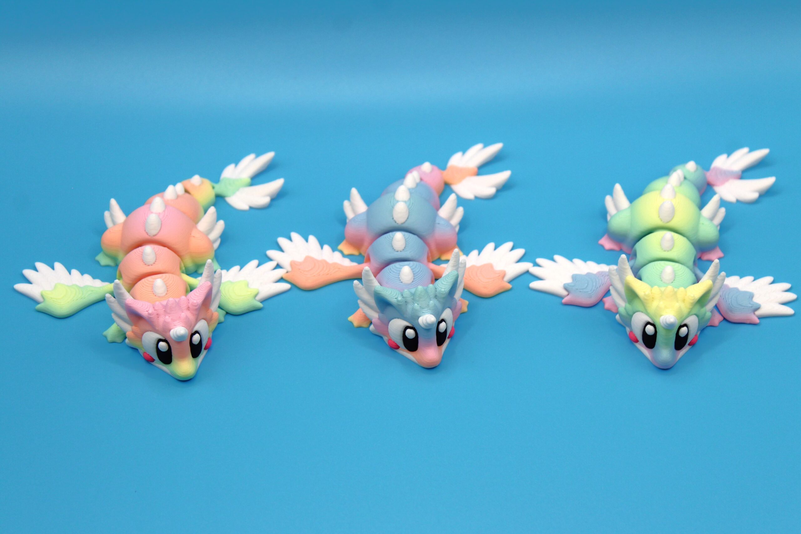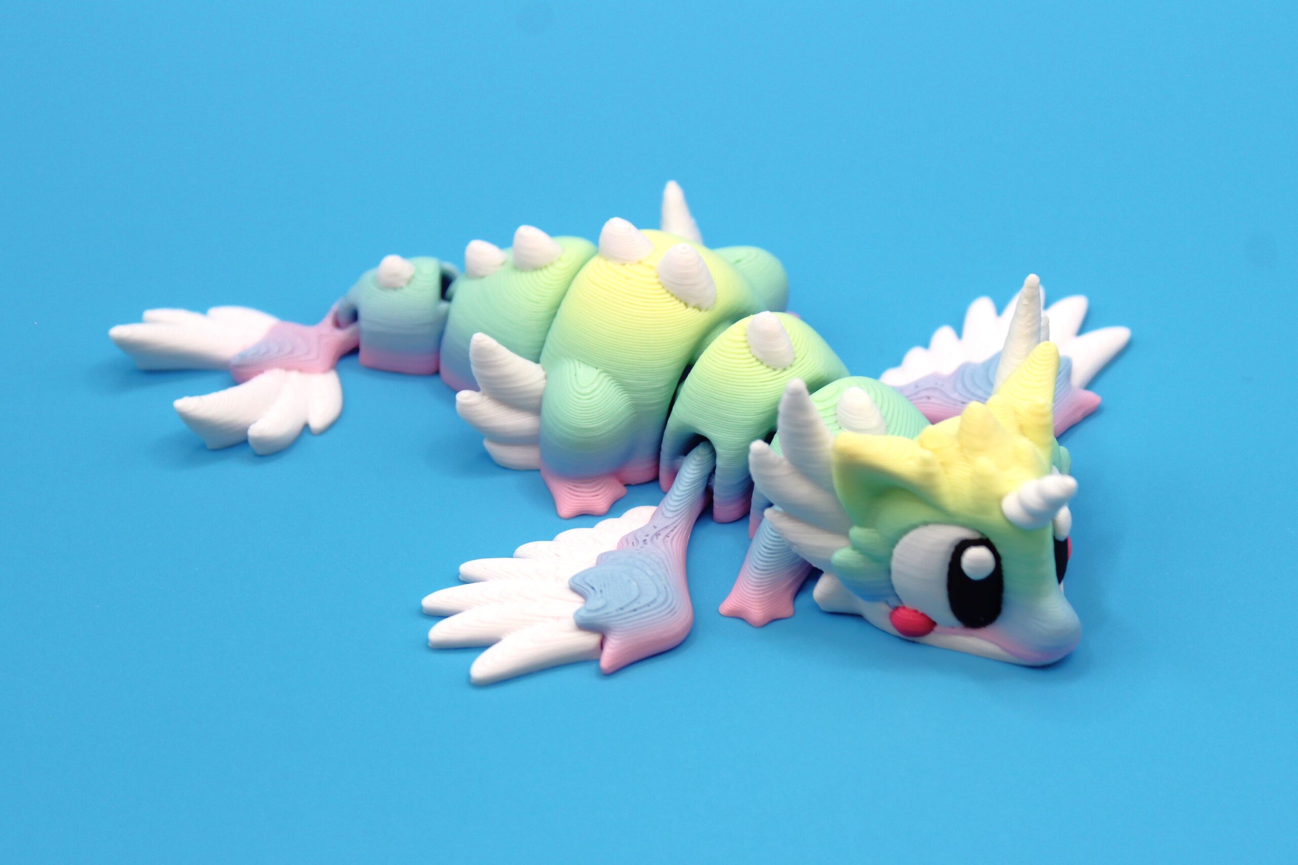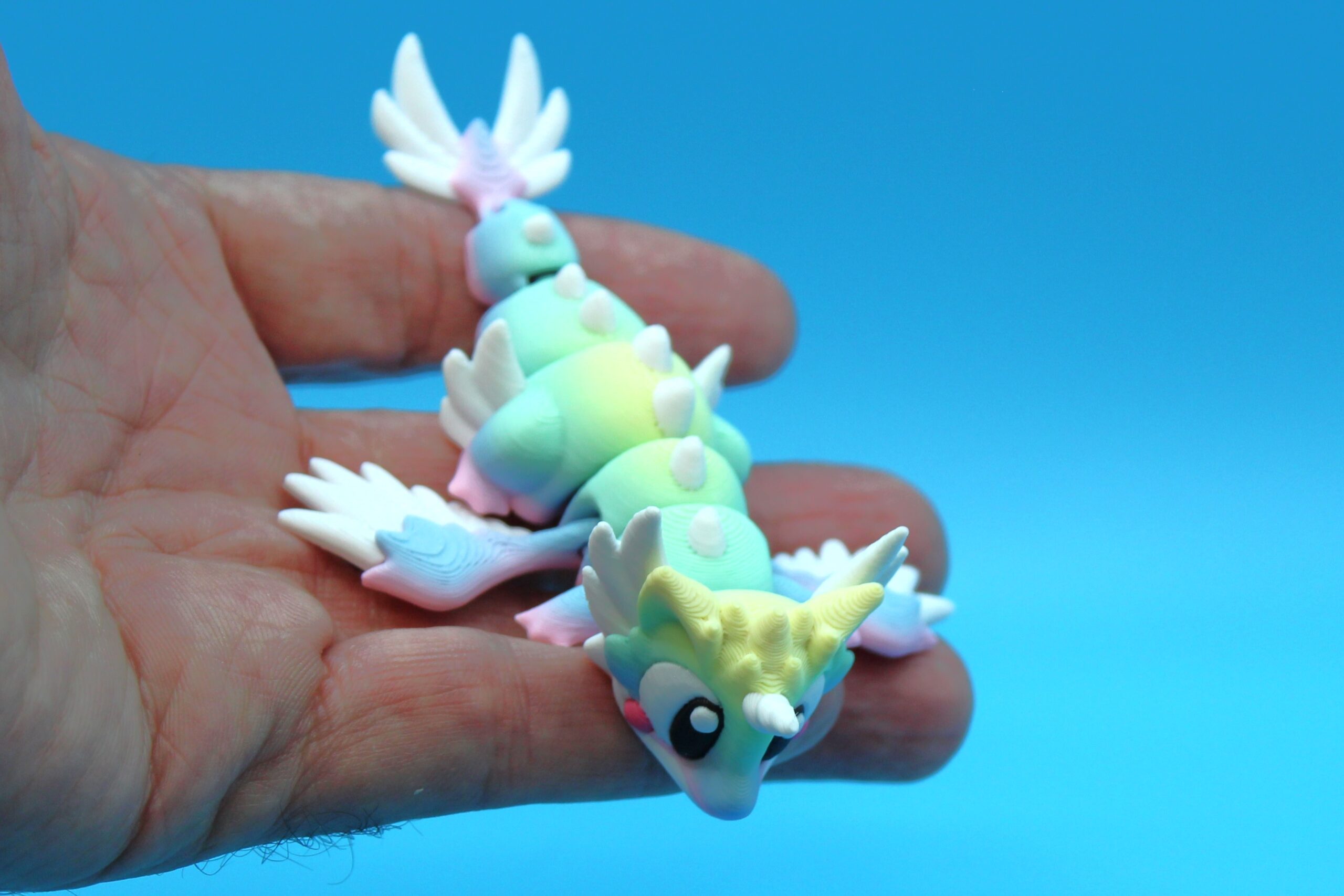 Introducing ‘Celestial’ Dragon by 3DGOB, our first in the new Pocket Dragon range ! These whimsical little creatures will bring a touch of magic to any space with their vibrant colours, expressive eyes, and fantastical wings. Perfect for dragon enthusiasts or anyone looking to add a playful touch to their décor. Printed in a beautiful rainbow colour called Unicorn, which changes colours during the print. This gives each print a unique colour range as you can see in the photos. Get yours today and let these mystical beings bring joy to your day!
