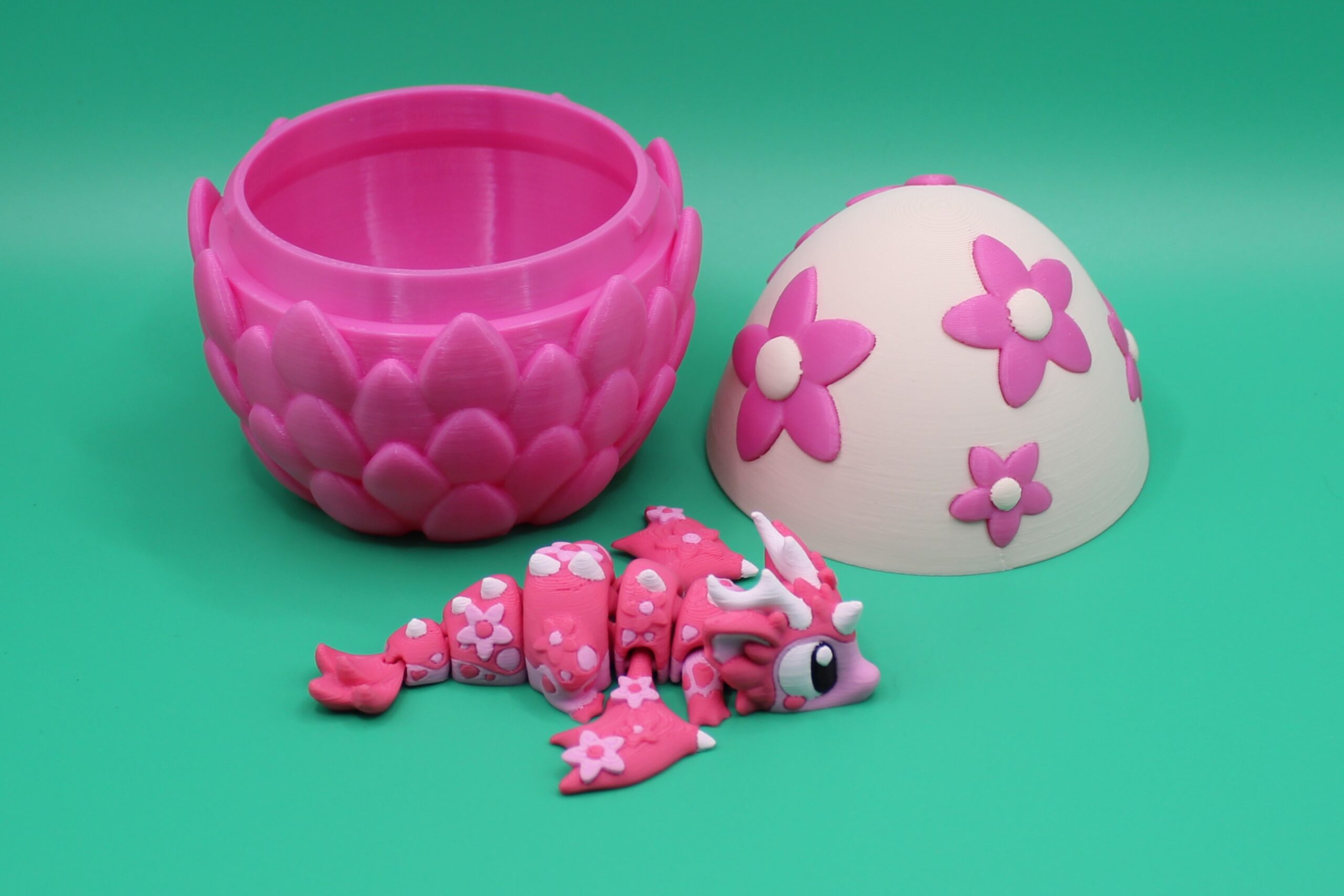 Introducing the ‘Cherry Blossom’ Dragon Gift Set by 3DGOB! This whimsical set includes a pink egg container with delicate petal-like designs and a white dome adorned with pink flowers. Nestled inside is a charming pink toy dragon, complete with matching floral patterns. Perfect for dragon enthusiasts with a soft spot for cherry blossoms, this set is sure to bring a touch of whimsy to any space. Get yours today and let your imagination take flight!