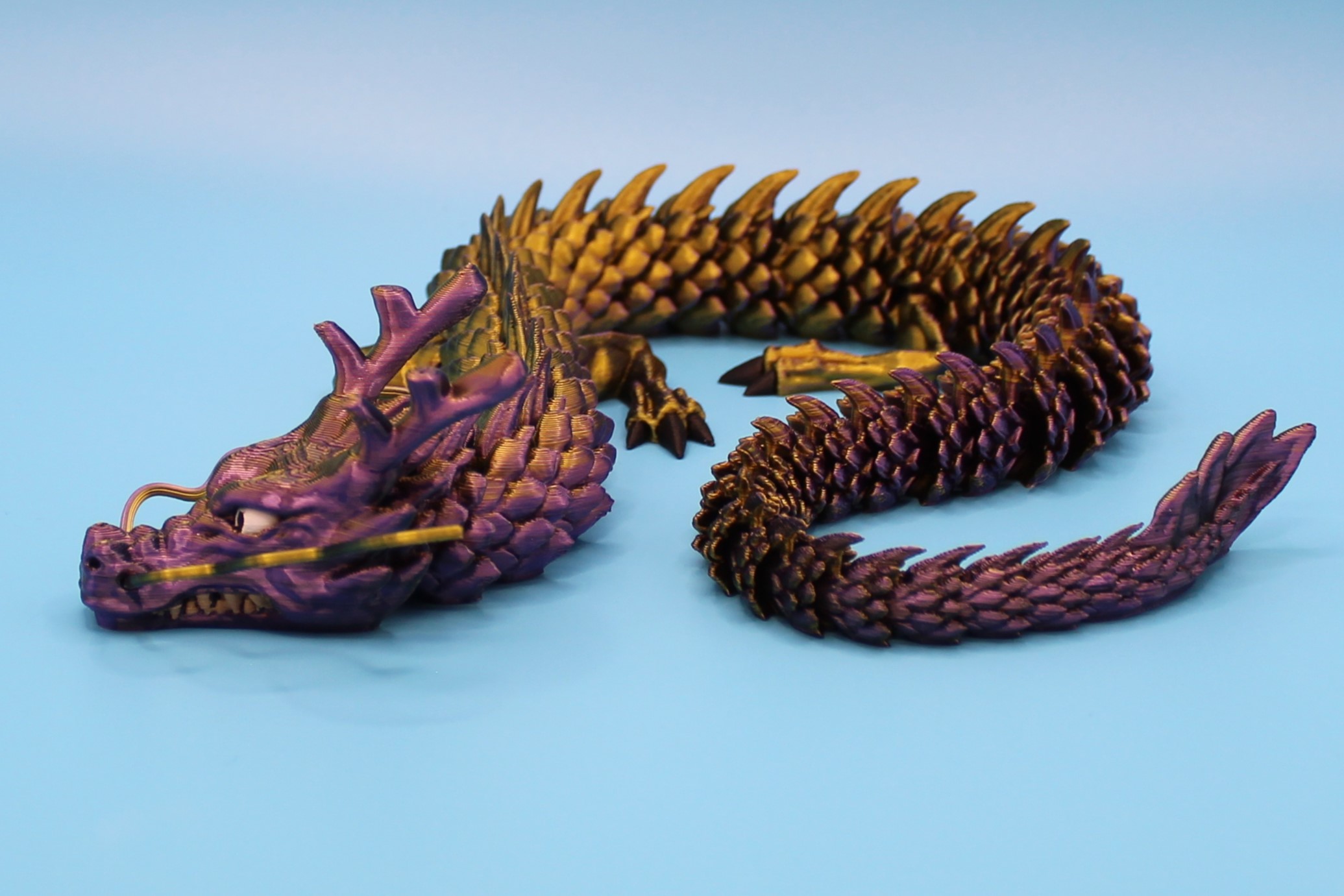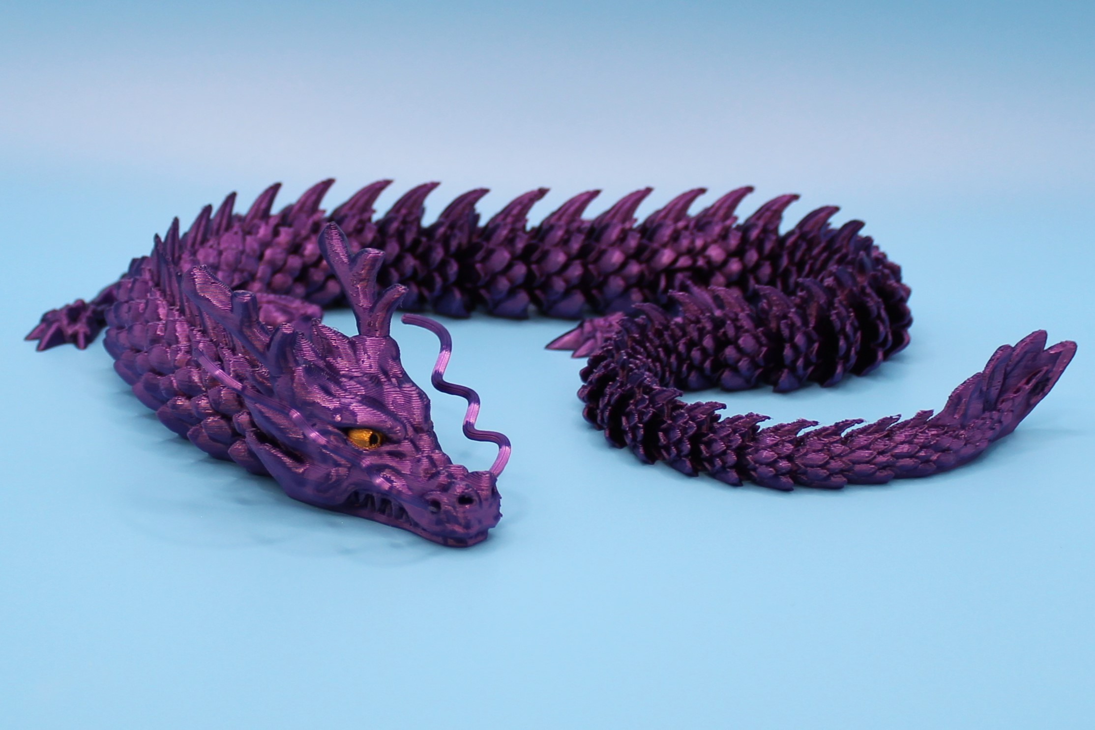 Introducing the Chinese Dragon by McGybeer! This stunning silk sculpture is a masterpiece of intricate design, with vibrant silky hues and lifelike details. Display this majestic creature in your home or office, and let it bring a touch of Eastern elegance to your space. At 450mm long, this flowing elegant dragon feels amazing in your hands. Perfect for dragon enthusiasts and art lovers alike!