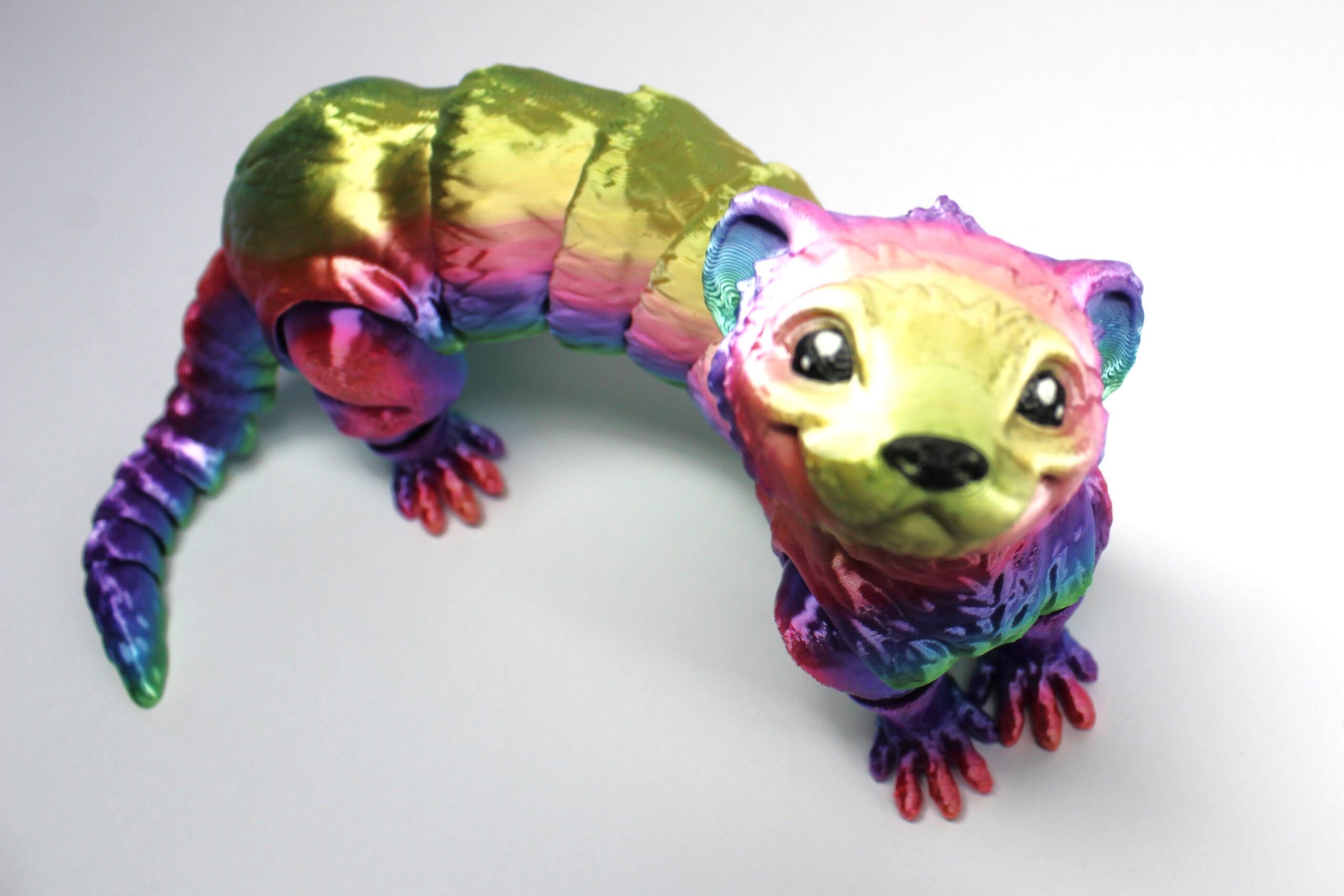 Introducing Ferret by MatMire Makes – the perfect addition to your playful collection! These adorable toy ferrets come in many vibrant colours, plus they are articulated. Their legs, feet, body, tail, and head all move to create the post you like. Standing at 210mm long and 85mm tall, this cute little Ferret will make a great table top pet. Get ready to have hours of fun with these colourful critters from MatMire Makes!
