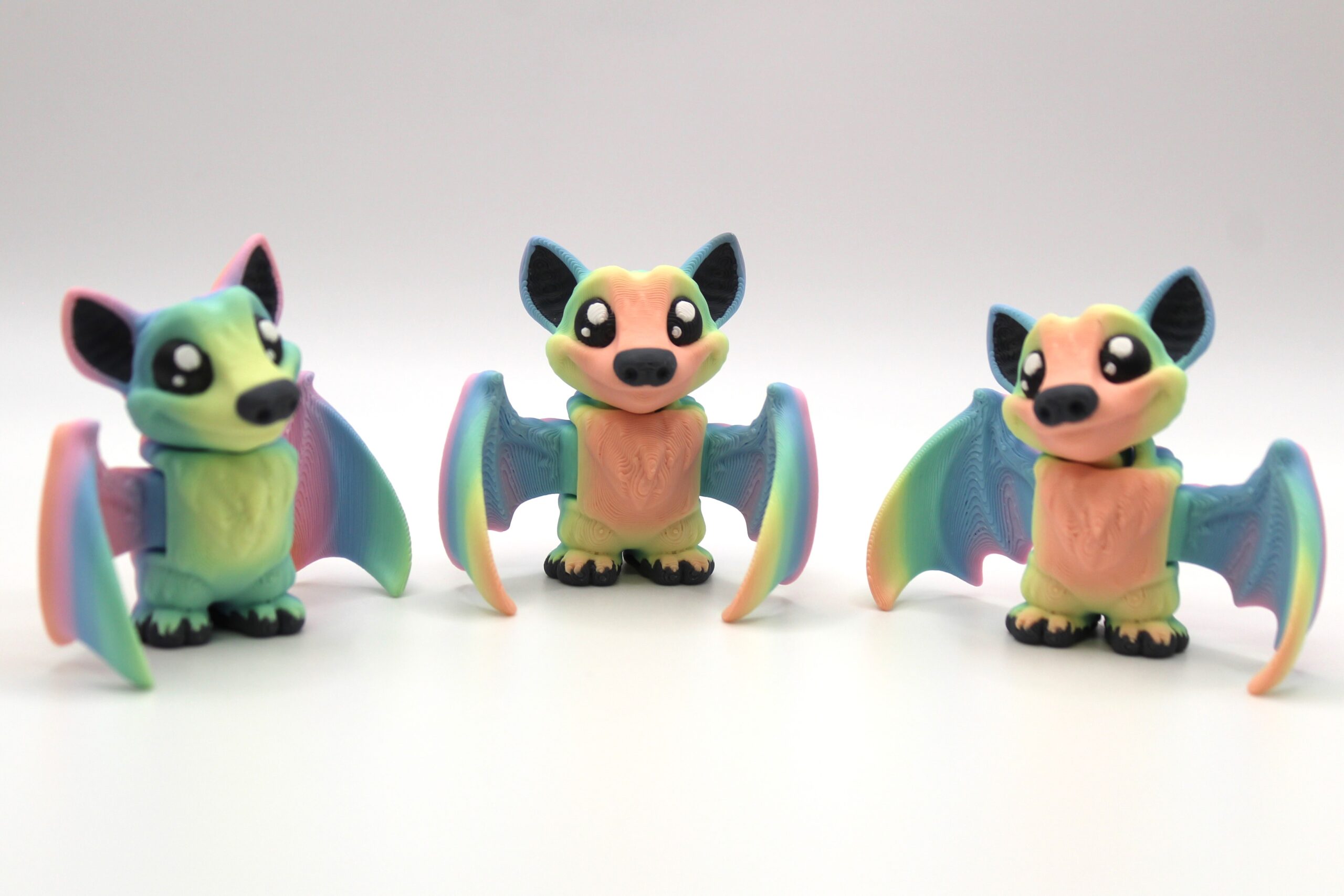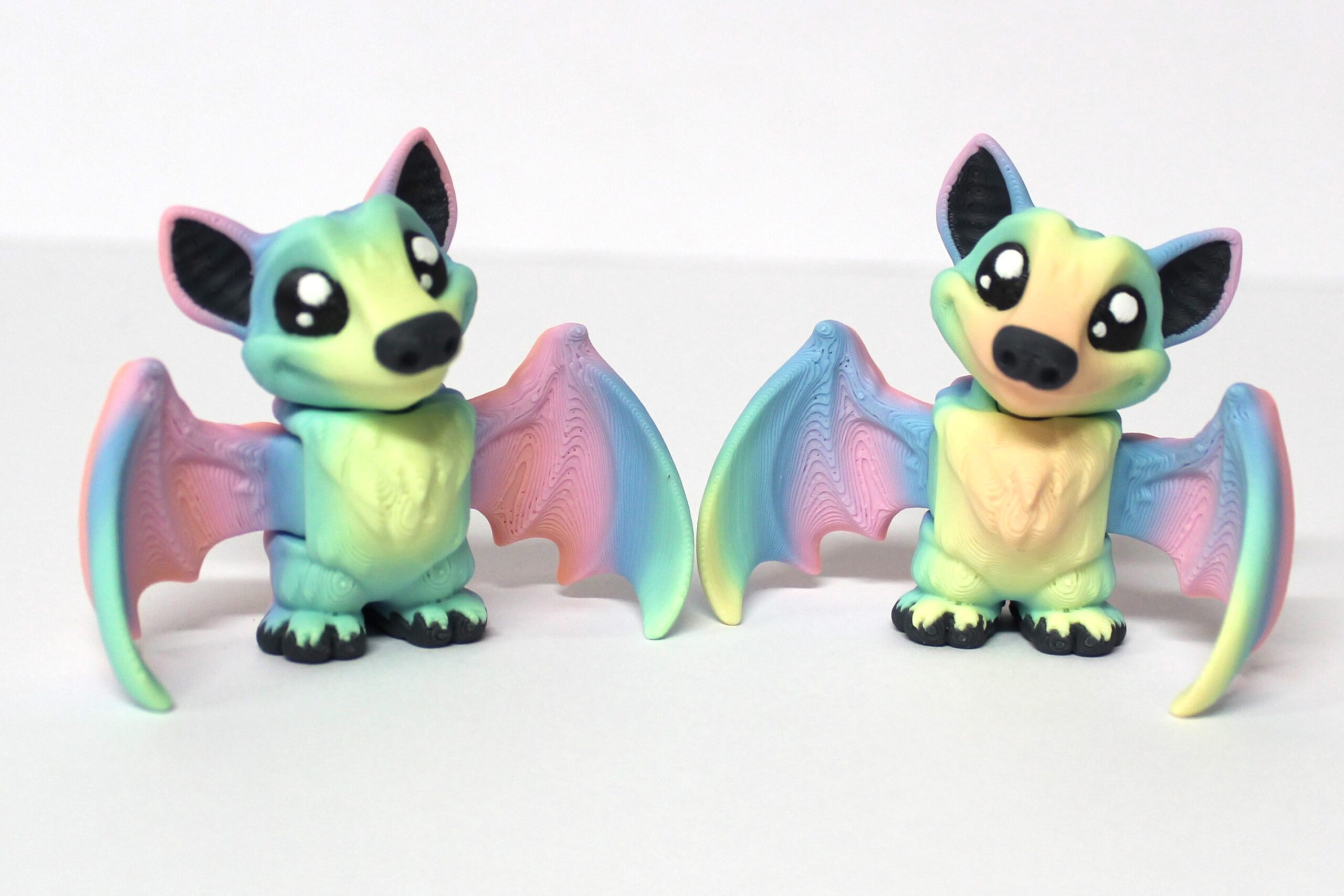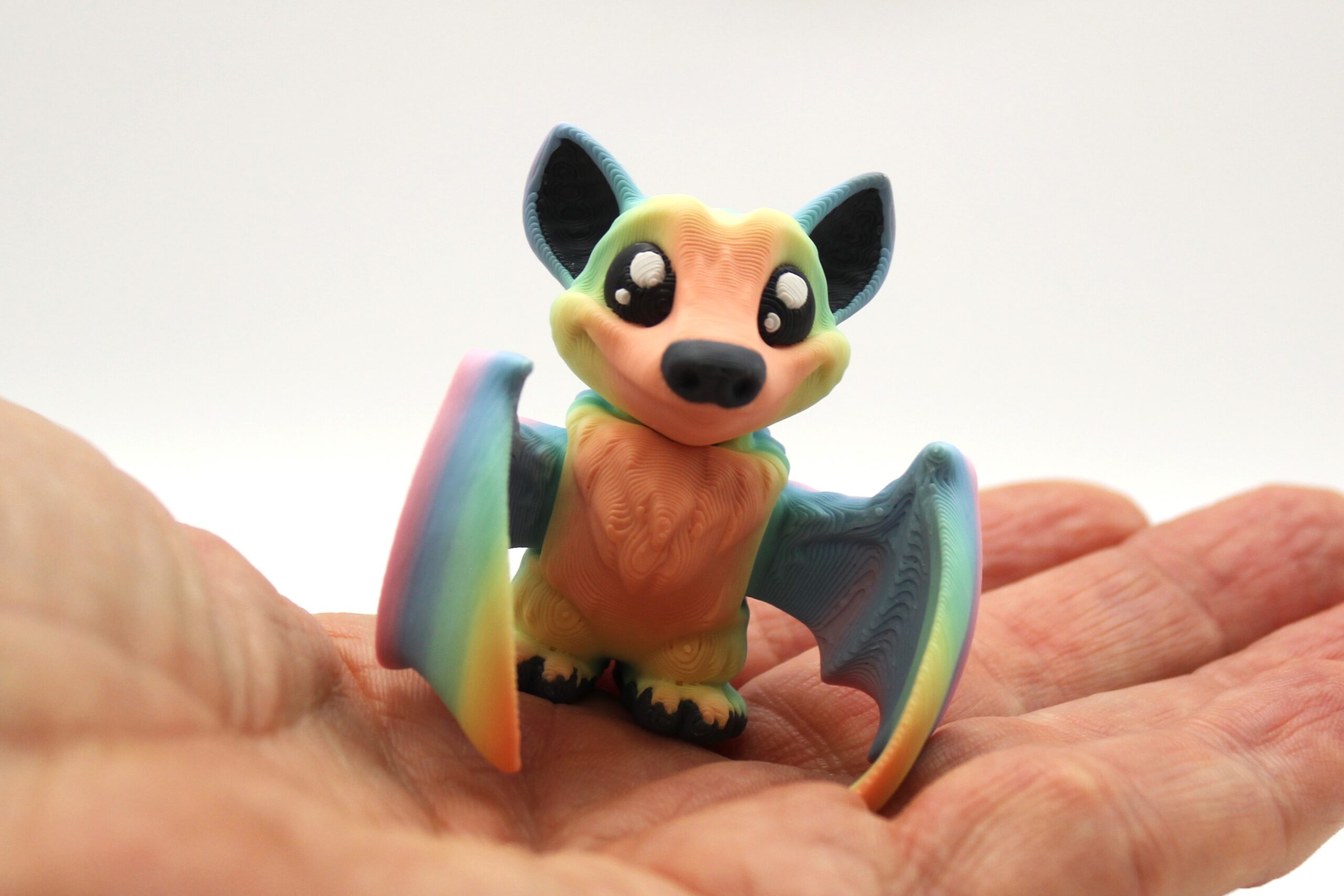 Introducing Pocket Pets – ‘Fruit Bat’ by MatMire Makes! These charming bat figurines are the perfect addition to your collection. With their large black eyes, pastel rainbow movable wings, and soft gradient colours, they are sure to bring a touch of whimsy to any space. Get yours today and let these adorable creatures fly into your heart!