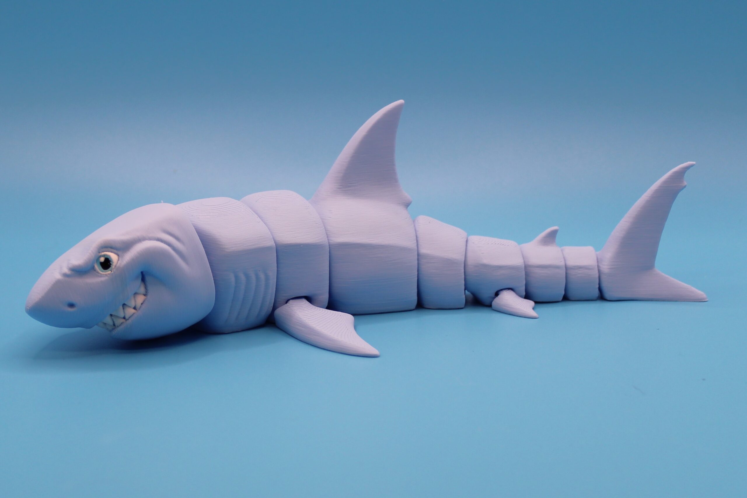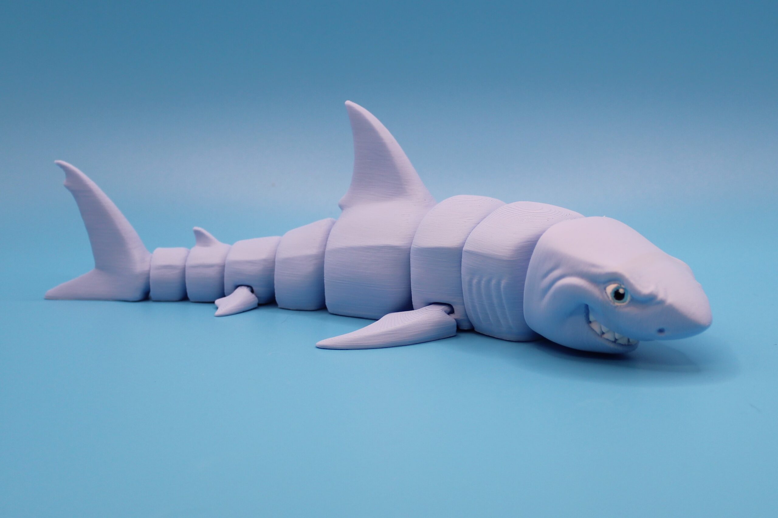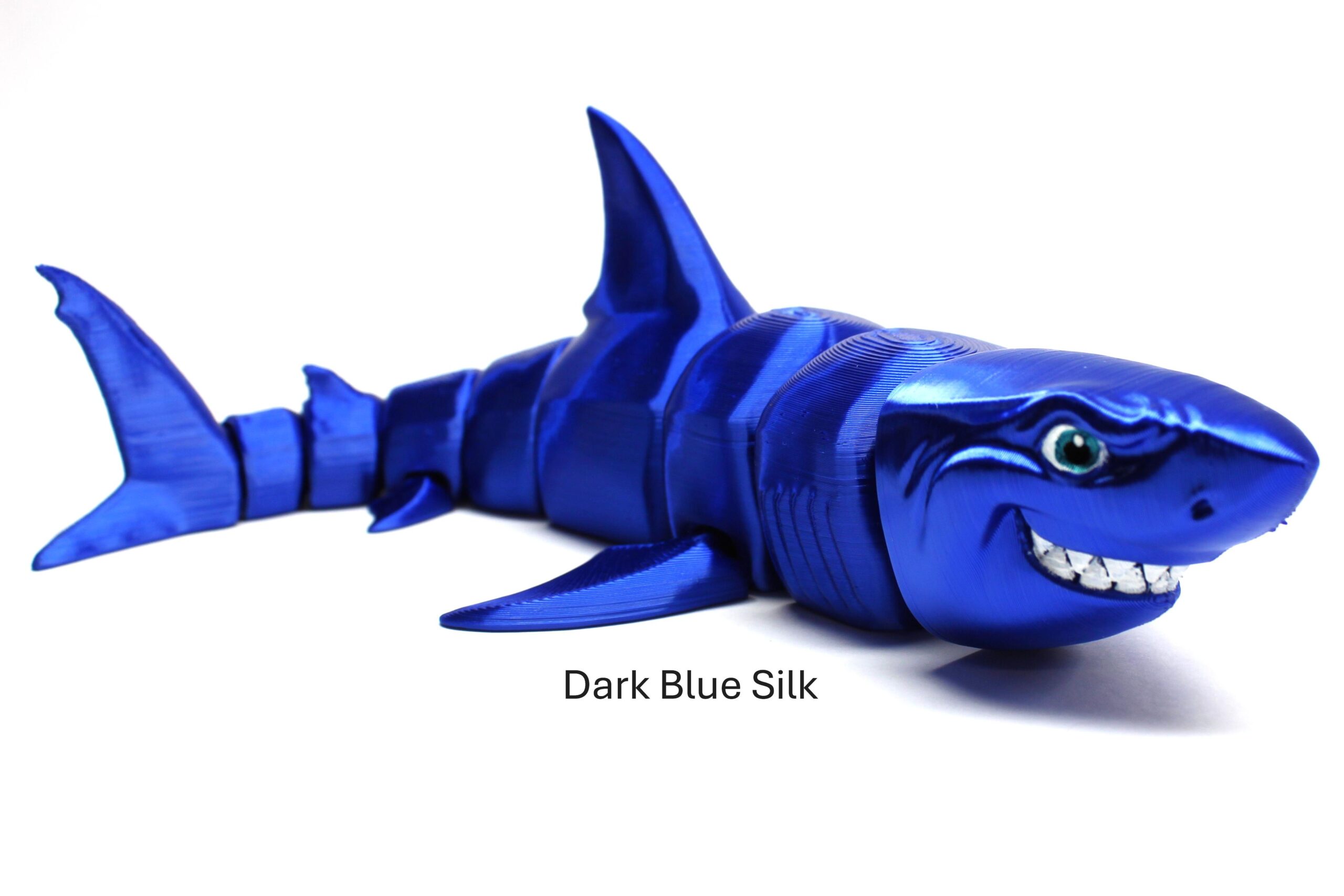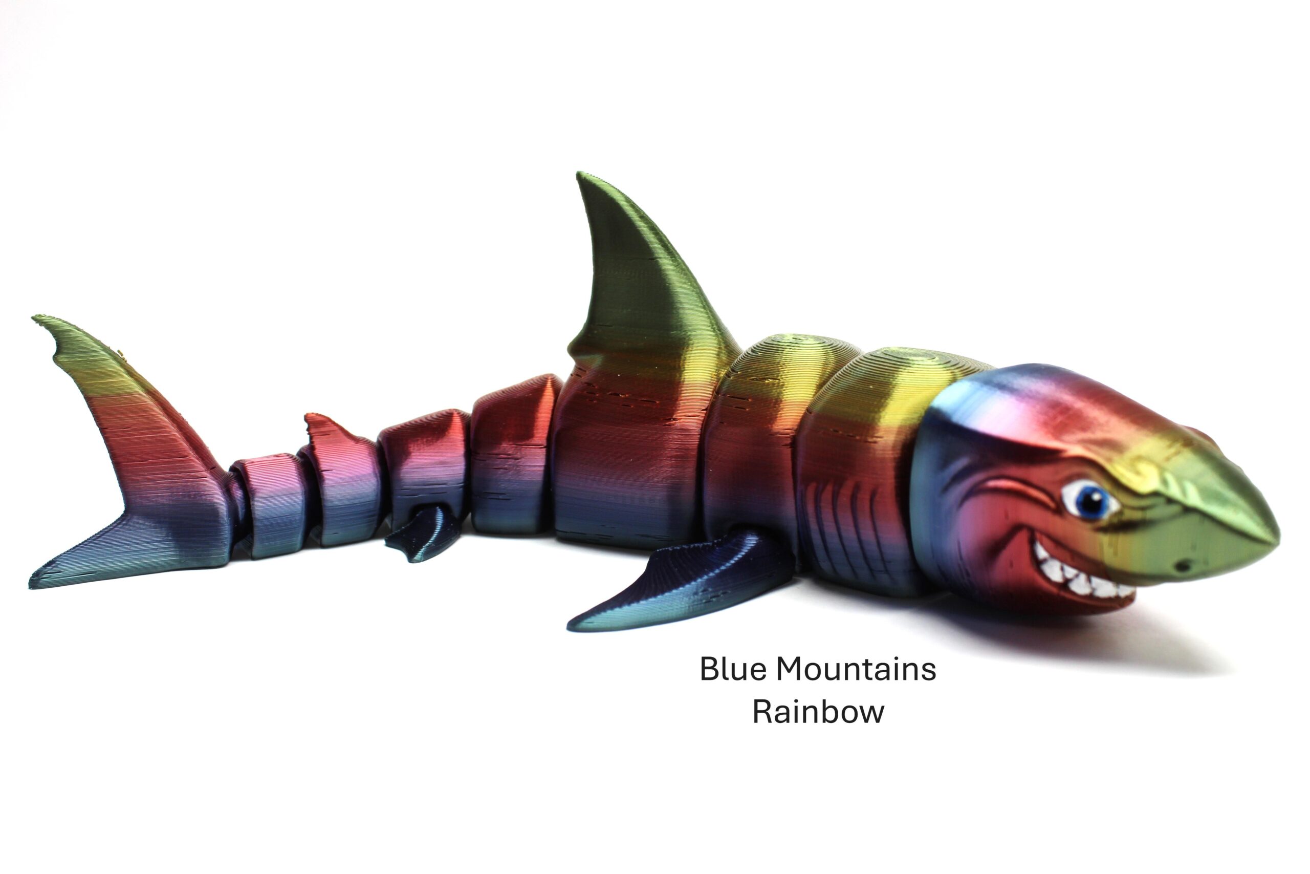 Introducing the Great White Shark by MatMire Makes! This colourful and playful segmented shark flexi-toy is sure to make a splash in your collection. With its vibrant rainbow gradient, or silky colours and articulated body parts for flexibility, this charming creature is perfect for adding a touch of whimsy to your space. Measuring 215mm long! Dive into fun with MatMire Makes creations!