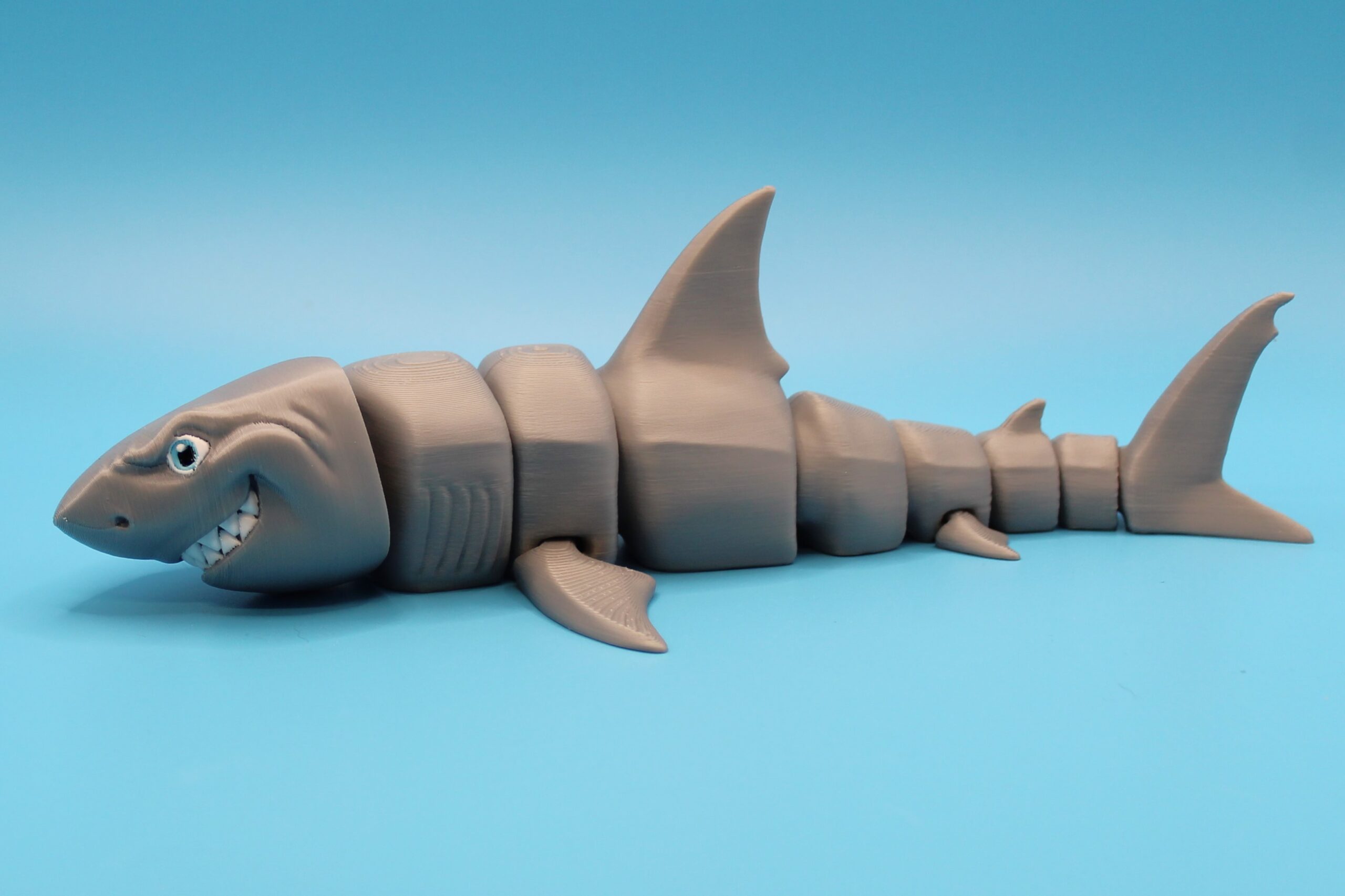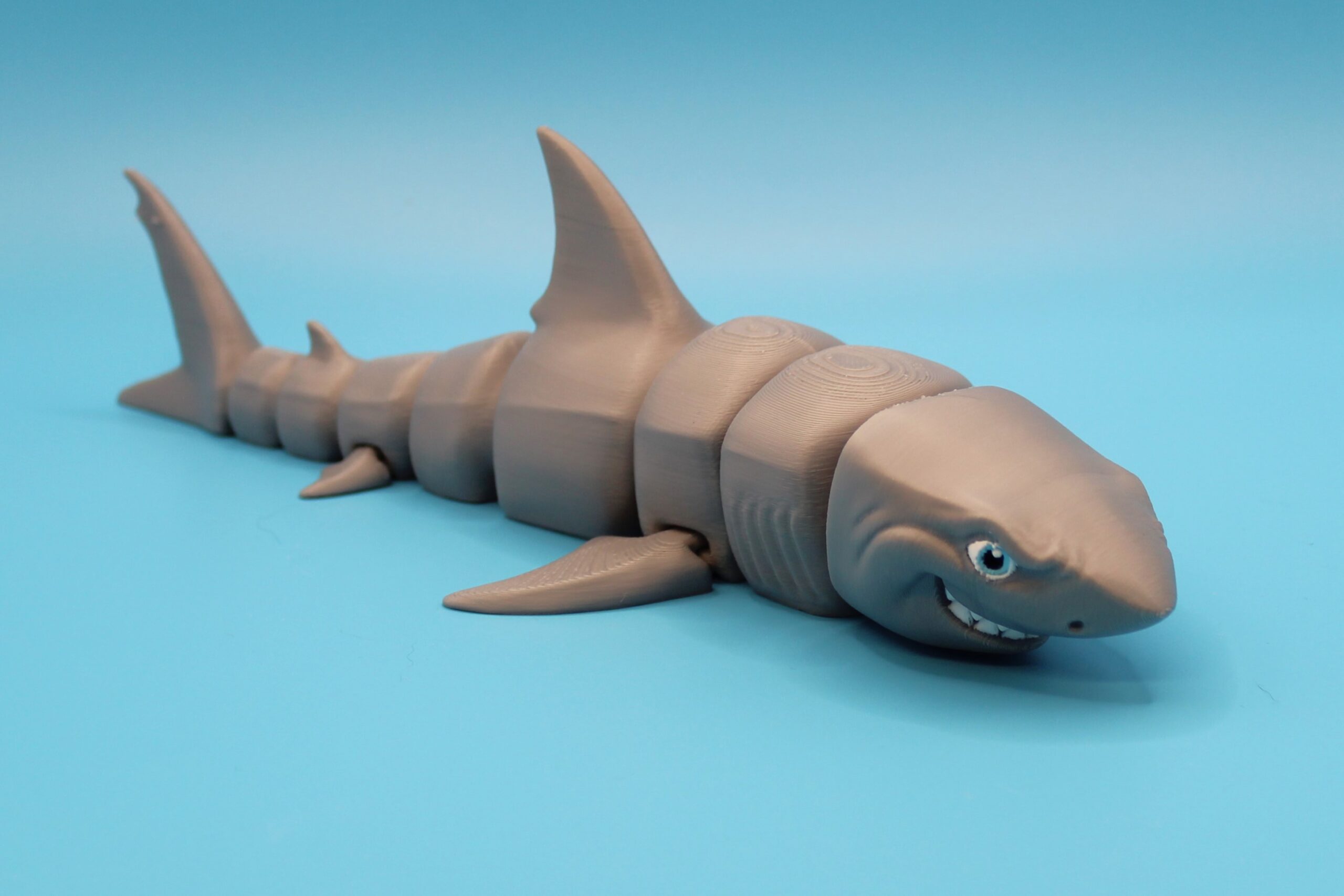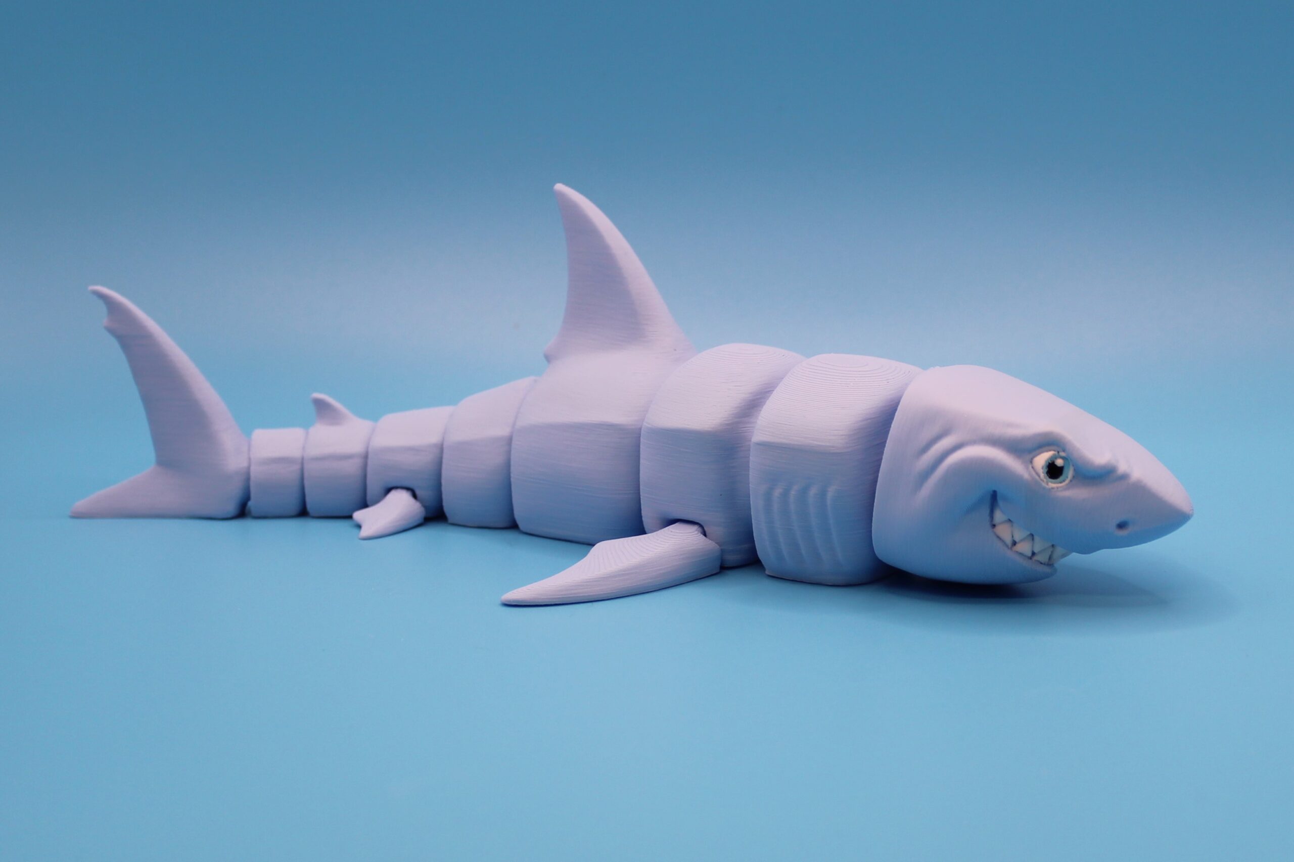 Introducing the Great White Shark by MatMire Makes! This colourful and playful segmented shark flexi-toy is sure to make a splash in your collection. With its vibrant rainbow gradient, or silky colours and articulated body parts for flexibility, this charming creature is perfect for adding a touch of whimsy to your space. Measuring 215mm long! Dive into fun with MatMire Makes creations!