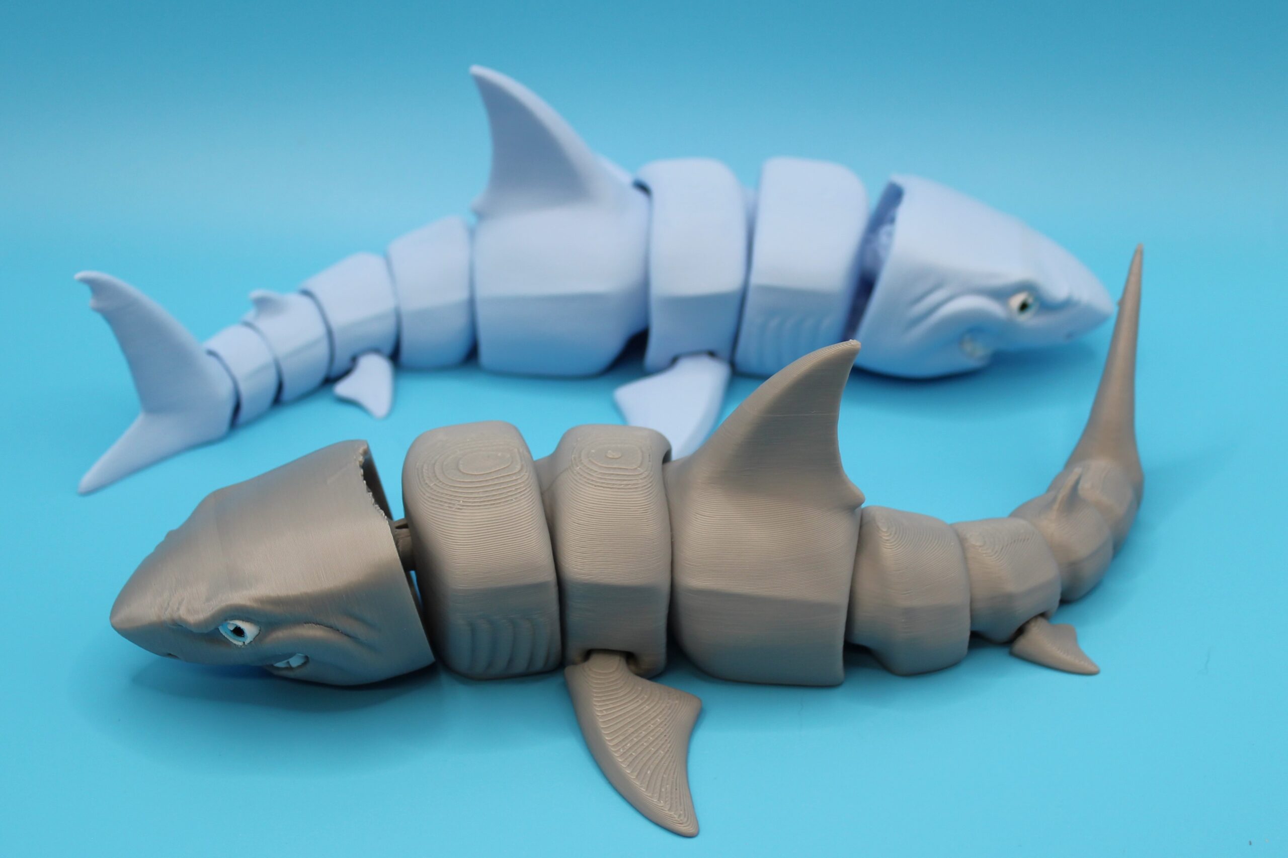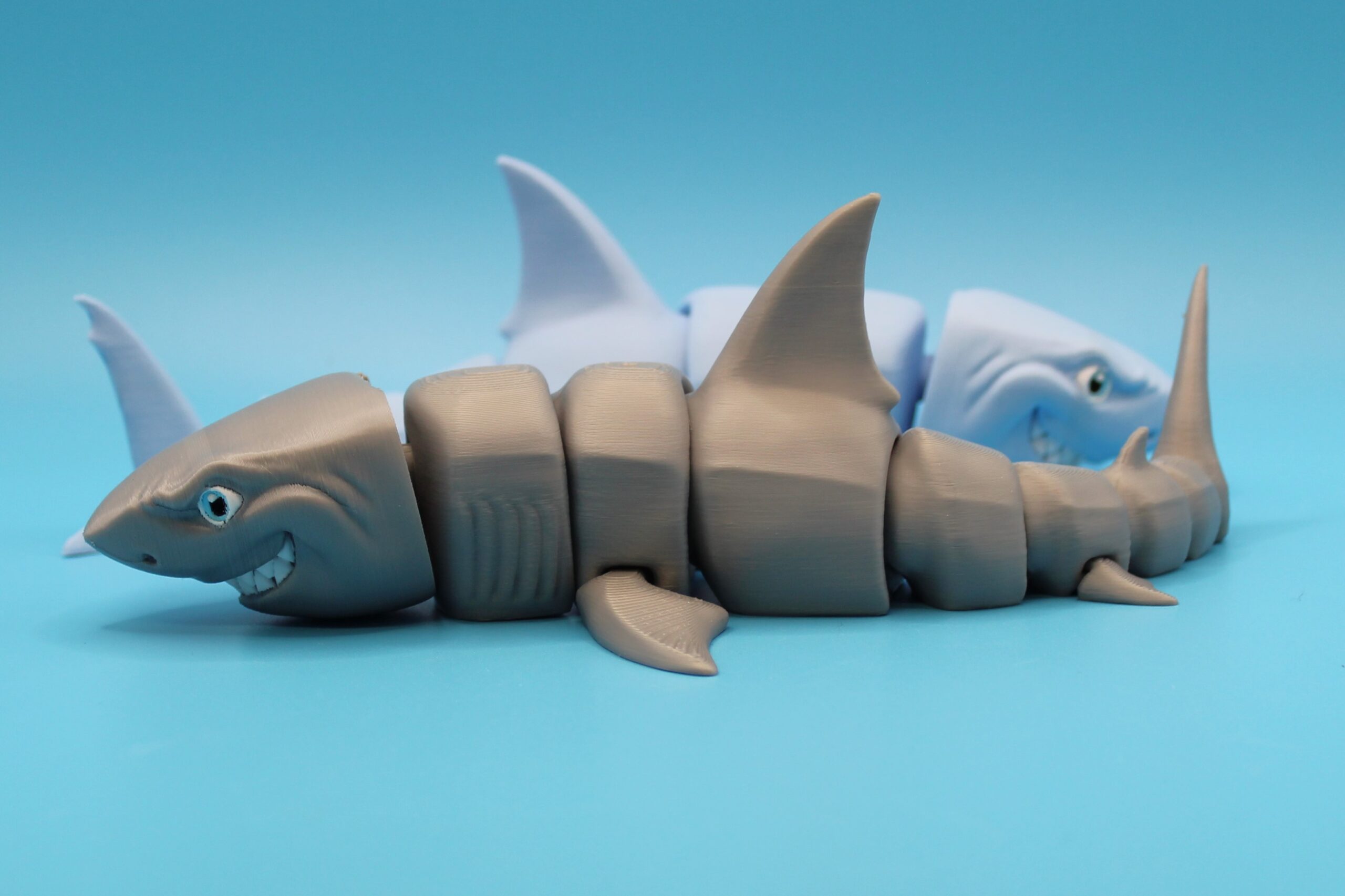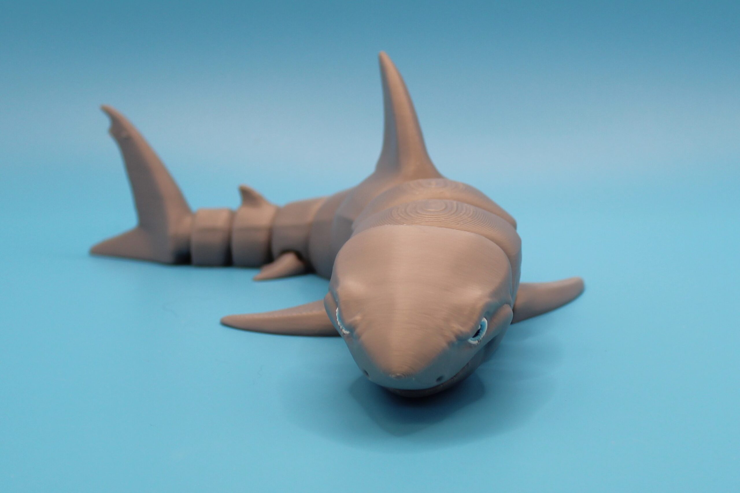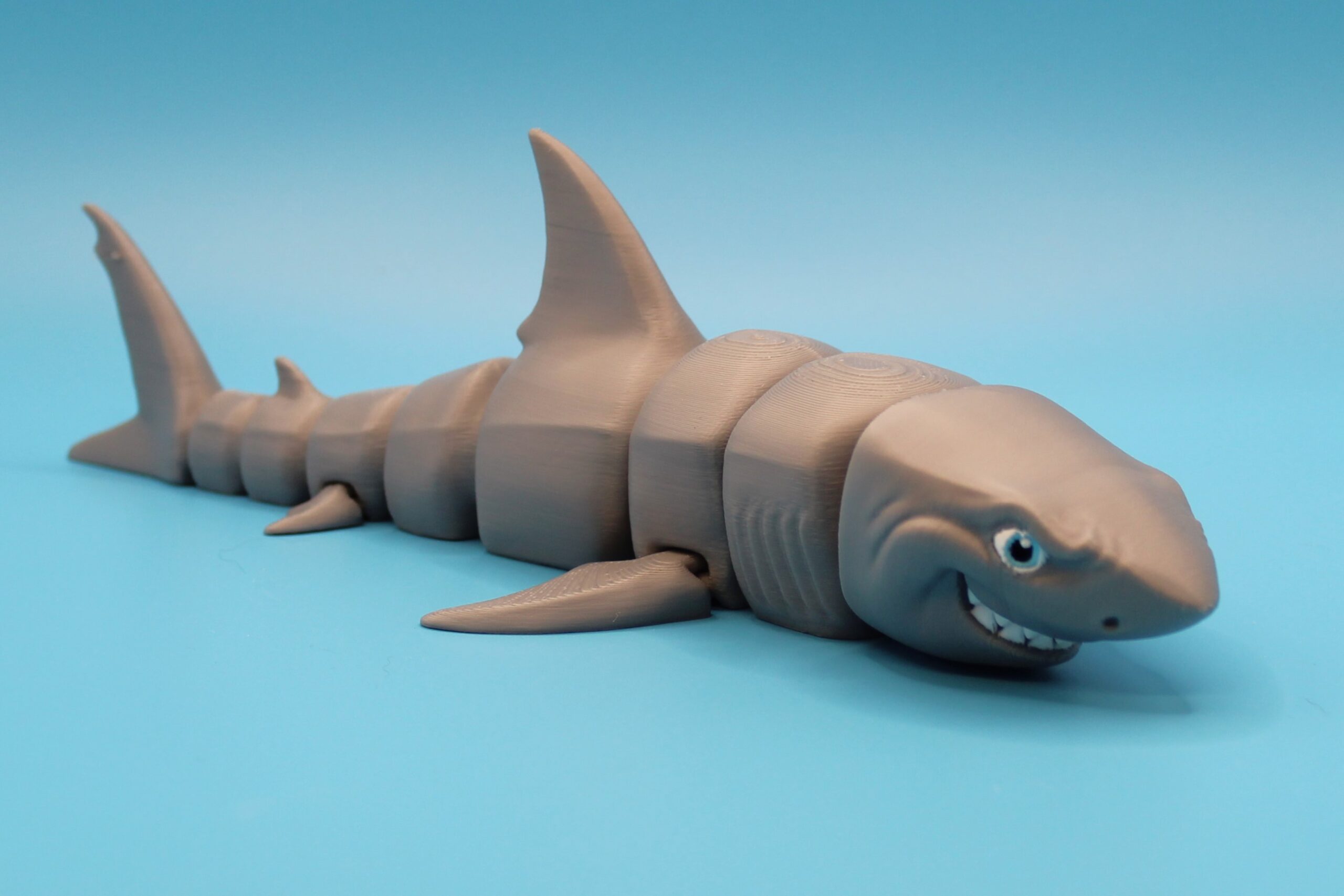 Introducing the Great White Shark by MatMire Makes! This colourful and playful segmented shark flexi-toy is sure to make a splash in your collection. With its vibrant rainbow gradient, or silky colours and articulated body parts for flexibility, this charming creature is perfect for adding a touch of whimsy to your space. Measuring 215mm long! Dive into fun with MatMire Makes creations!