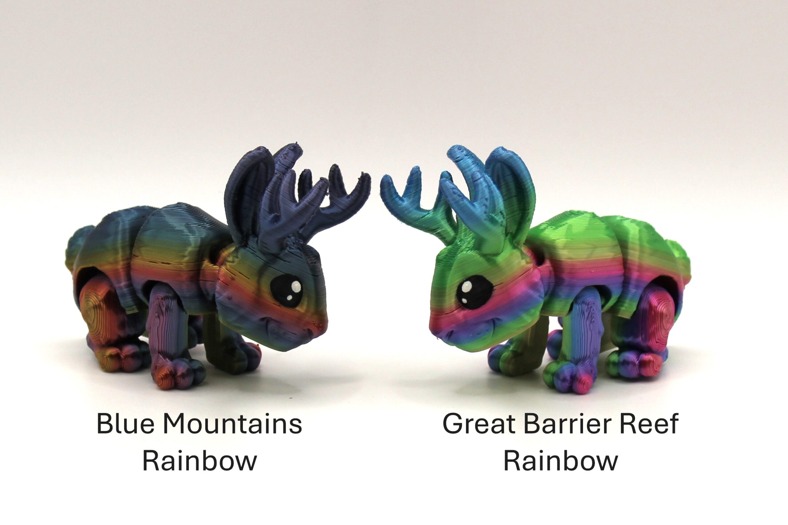 Introducing Pocket Pets – ‘Jackolope Deerhorn’ by MatMire Makes! These adorable 3D-printed rabbit-like creatures with antlers are sure to add a touch of whimsy to your collection. Available in a variety of vibrant colours, these little critters are perfect for animal lovers and collectors alike. Get yours today and bring some magic into your life!