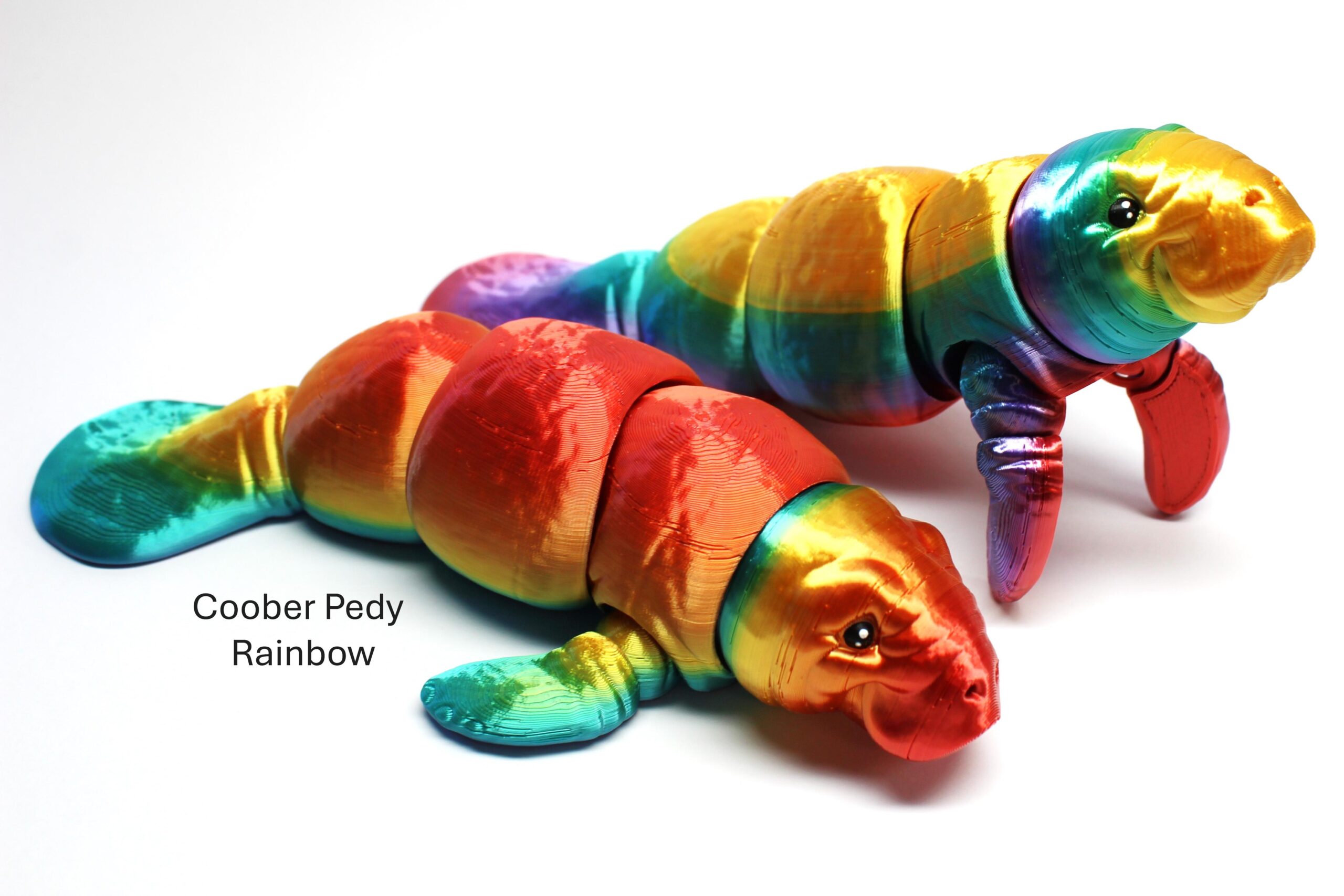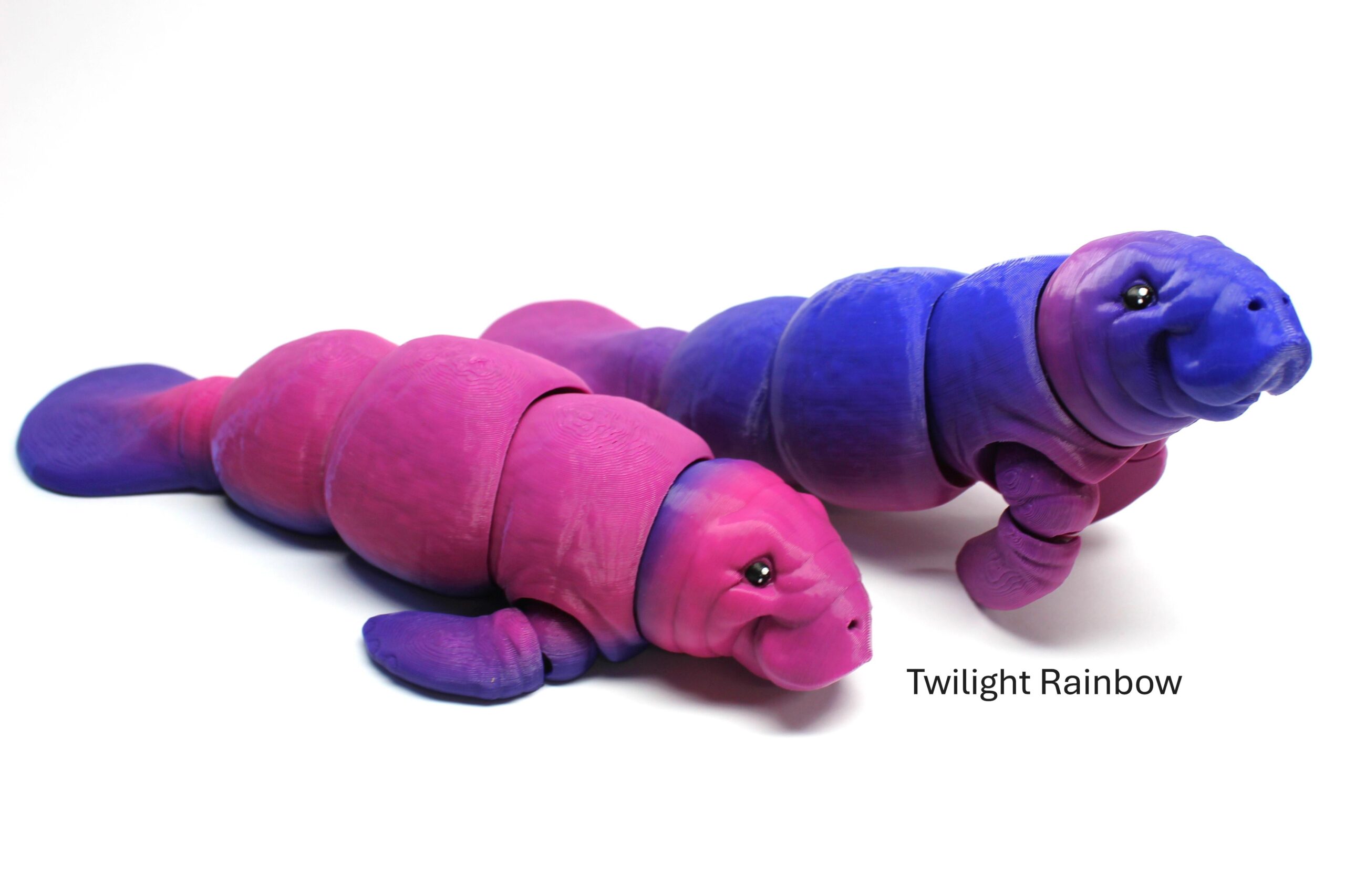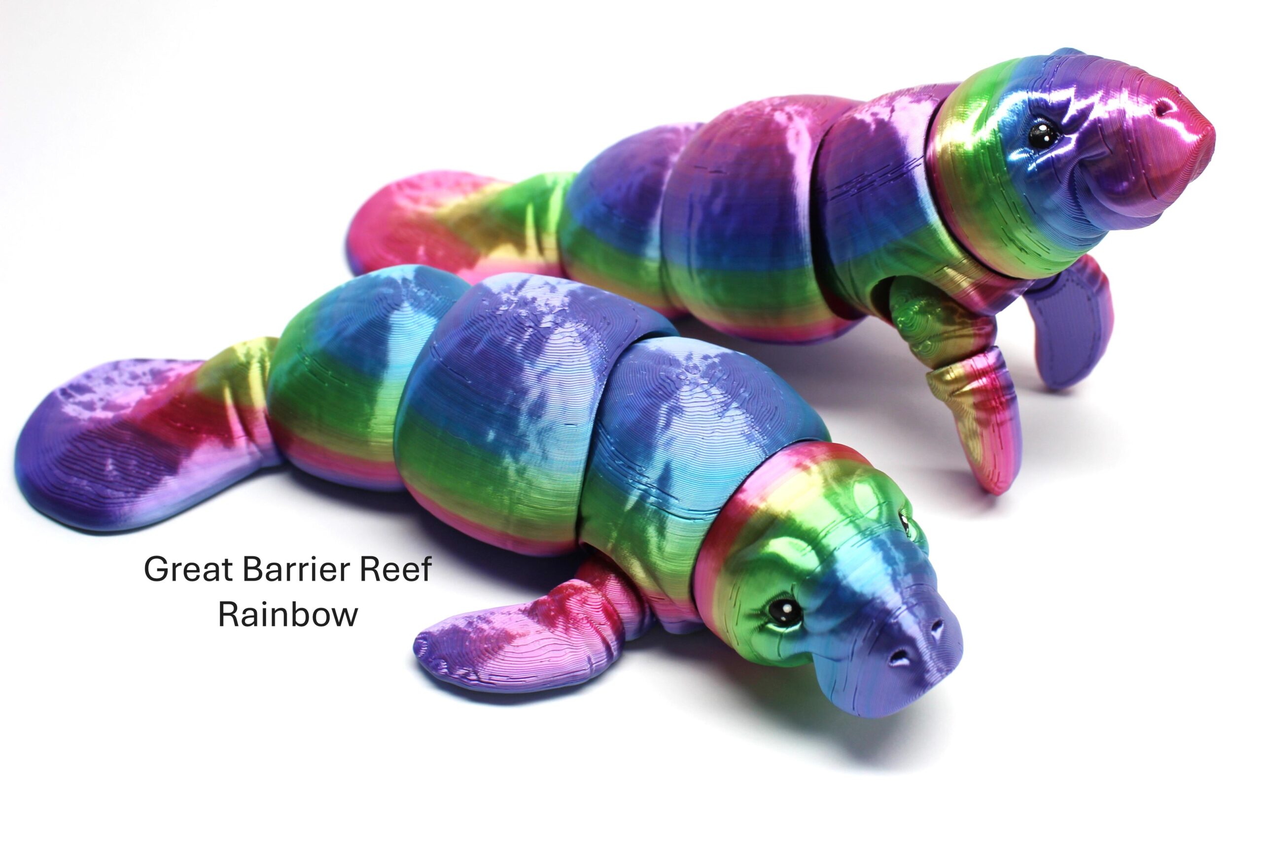Introducing the Manatee by MatMire Makes – the quirky little critter that’s here to brighten up your day! This segmented fidget toy, features a smooth, shiny surface printed in a gradient rainbow or silk effect. Perfect for adding a splash of whimsy to your desk or bookshelf, this little guy is sure to bring a smile to your face every time you see him. Get your hands on this unique creation from our Water Critters collection today!