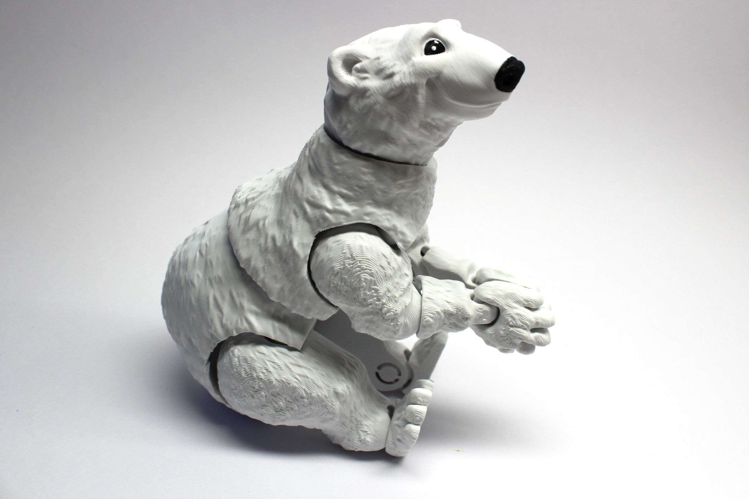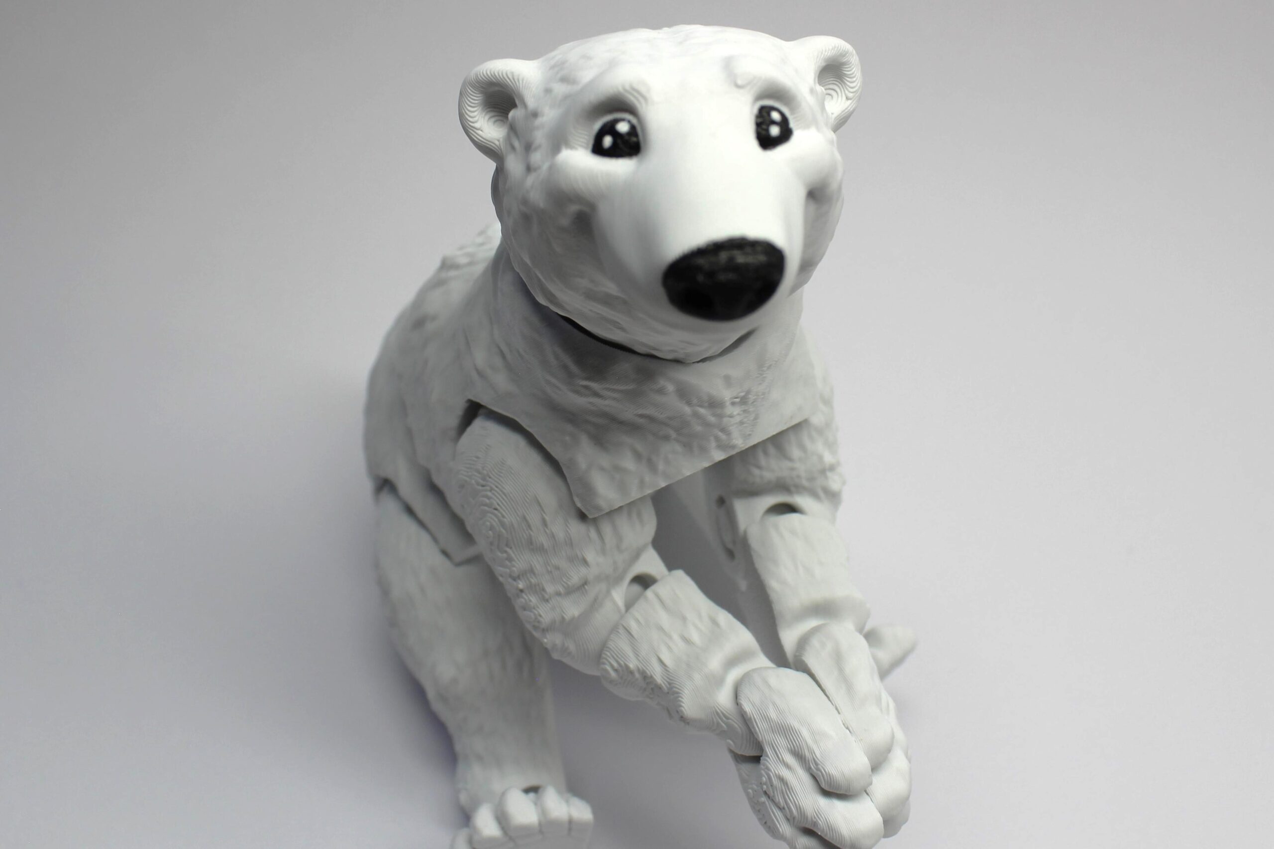 Introducing the Polar Bear by MatMire Makes! This adorable toy polar bear is the perfect addition to any collection. With its large, shiny black eyes and curious expression, this little guy is sure to bring a smile to your face. Made with high-quality materials, this polar bear is perfect for cuddling or display. Add a touch of whimsy to your home with the Polar Bear by MatMire Makes. Get yours today from Squiz 3D!