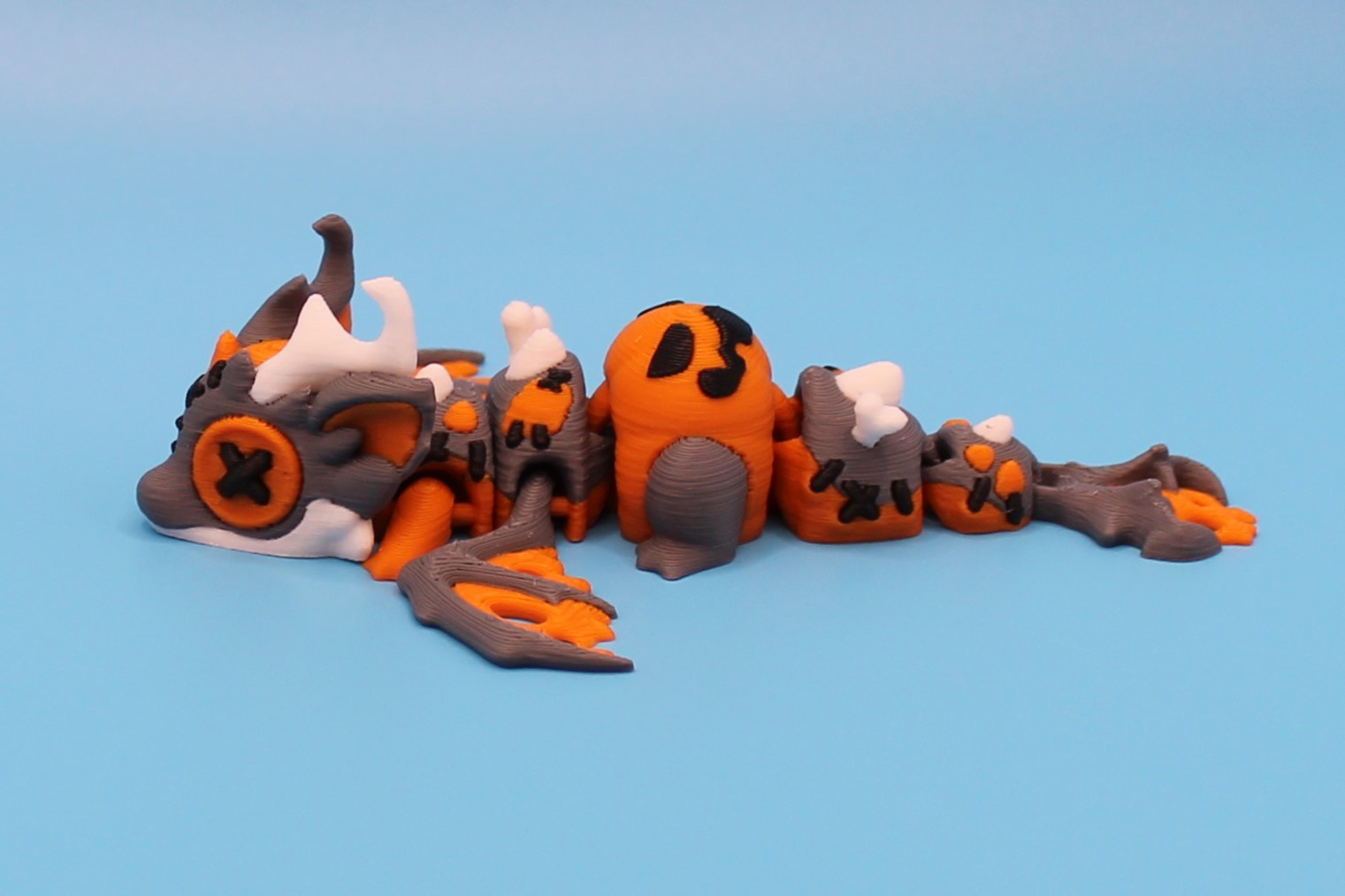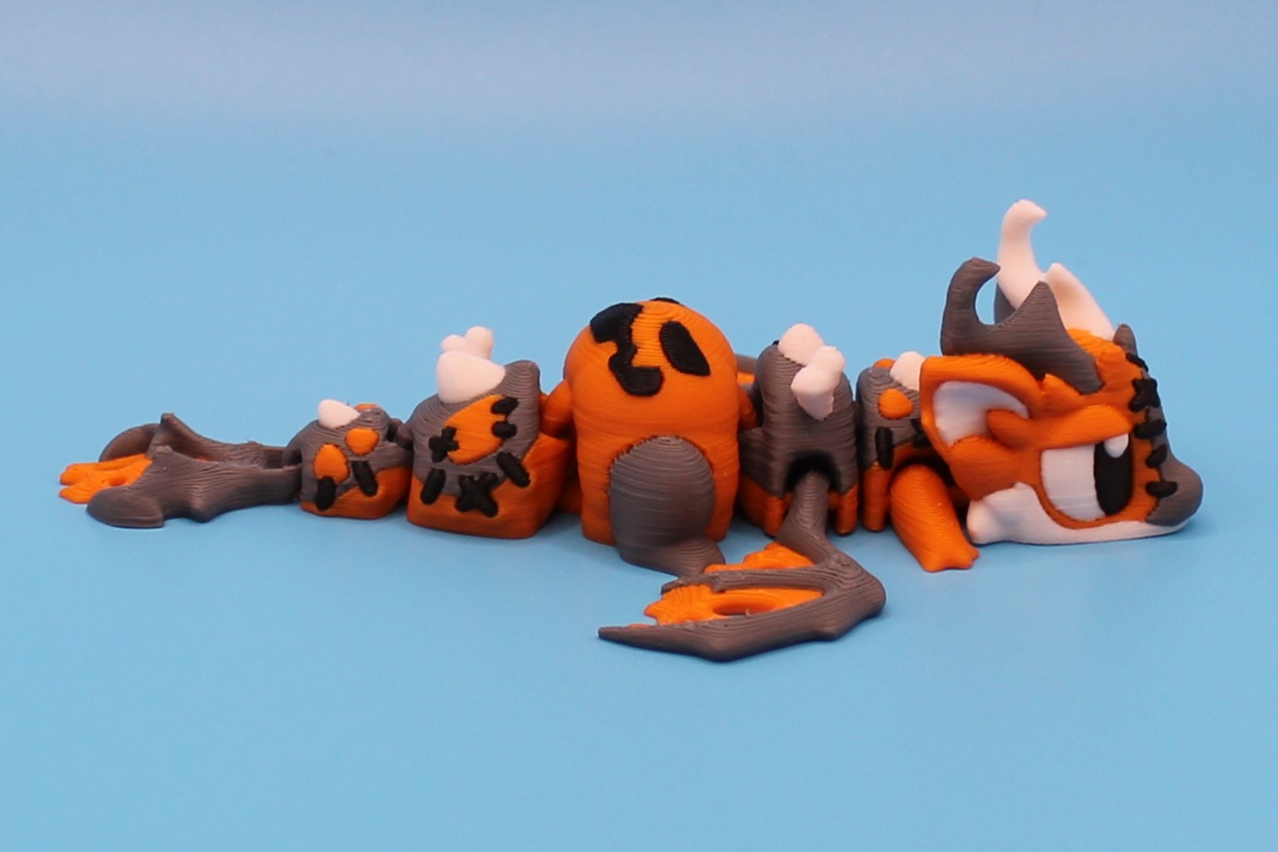 Introducing ‘Pumpkin’ the Halloween Dragon by 3DGOB – the spooktacular addition to your toy collection! This segmented dragon toy is a perfect mix of cute and creepy, with its vibrant orange, grey, and white colours. With intricate details like horns, claws, and bone-like decorations, this dragon is ready to bring some Halloween fun to your home. Get your hands on ‘Pumpkin’ today and let the magic of 3DGOB bring some laughter and scares to your life!