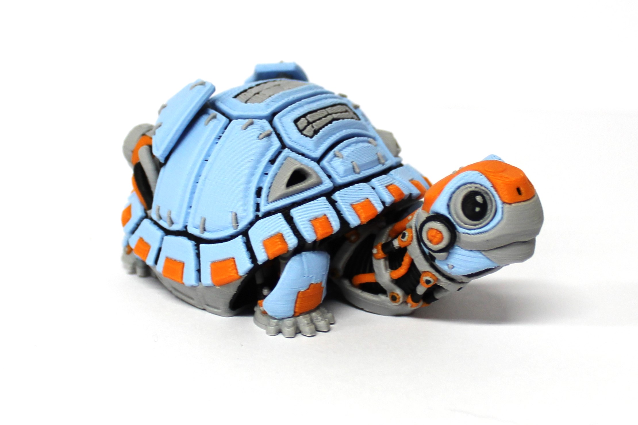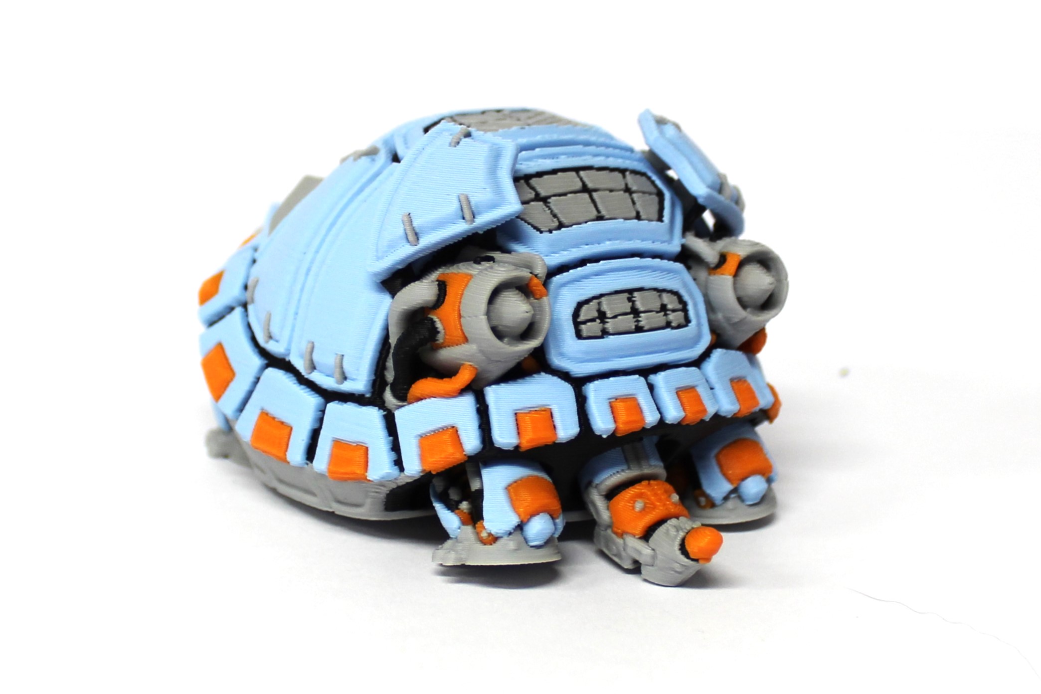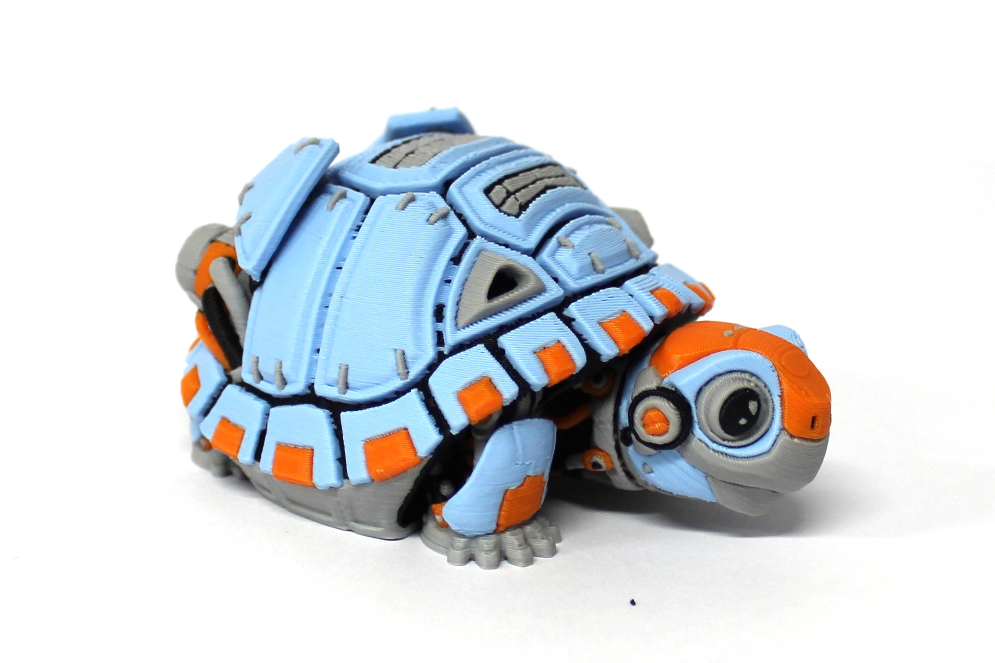Introducing the Robo Tortoise by MatMire Makes – the quirky and fun robotic turtles that are sure to bring a smile to your face! With their vibrant blue and orange shells, these little guys are perfect for adding a touch of whimsy to your desk or bookshelf. Filled with intricate details such as Armor plate, coil spring and hydraulics, and two jet engines! Get ready to watch them scuttle around and brighten up your day! Measuring 95mm long and 45mm high whilst resting, plus its also articulated so the legs, tail, and head can retract or extend from it’s armoured shell. Grab one while you can!