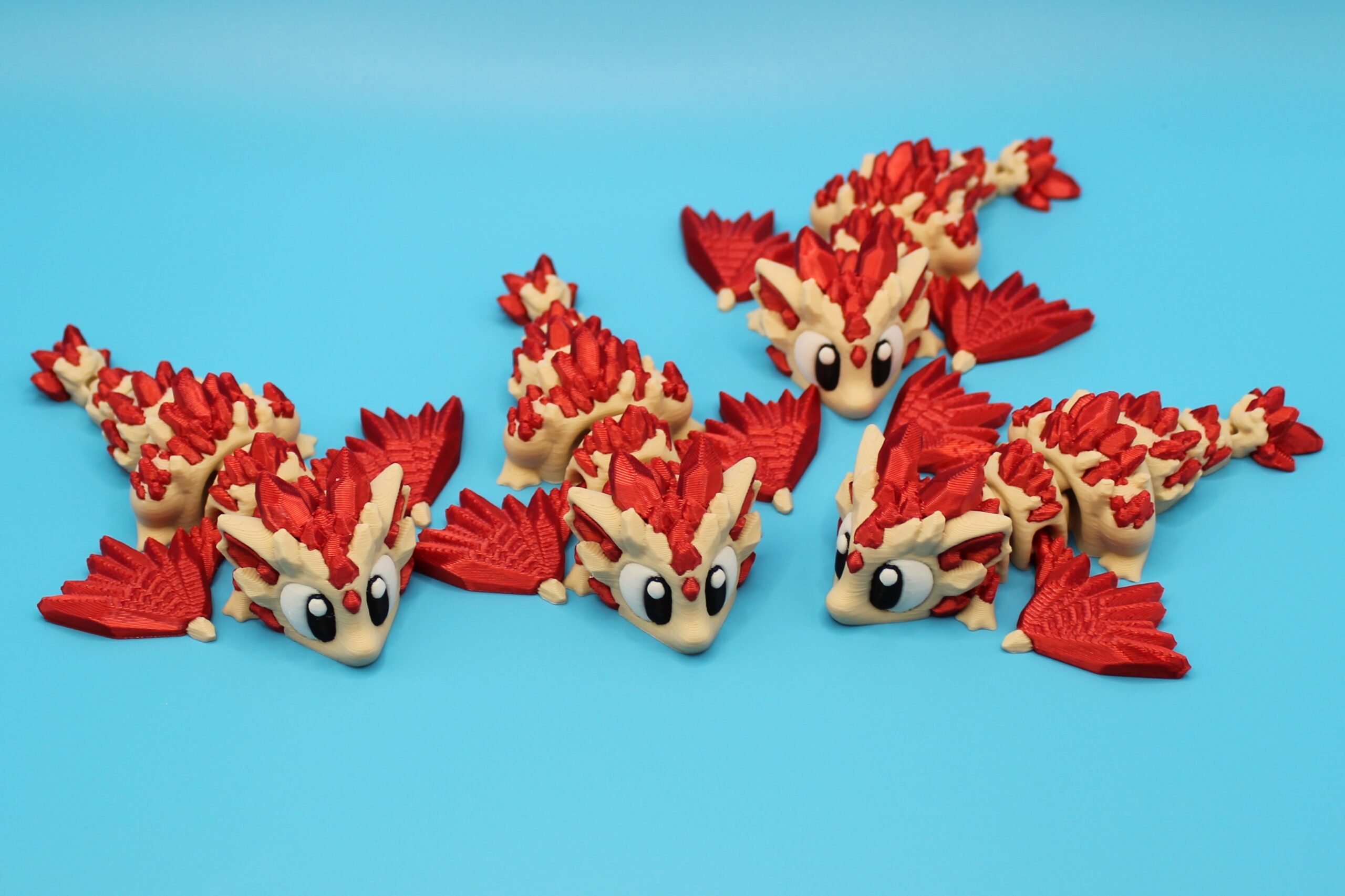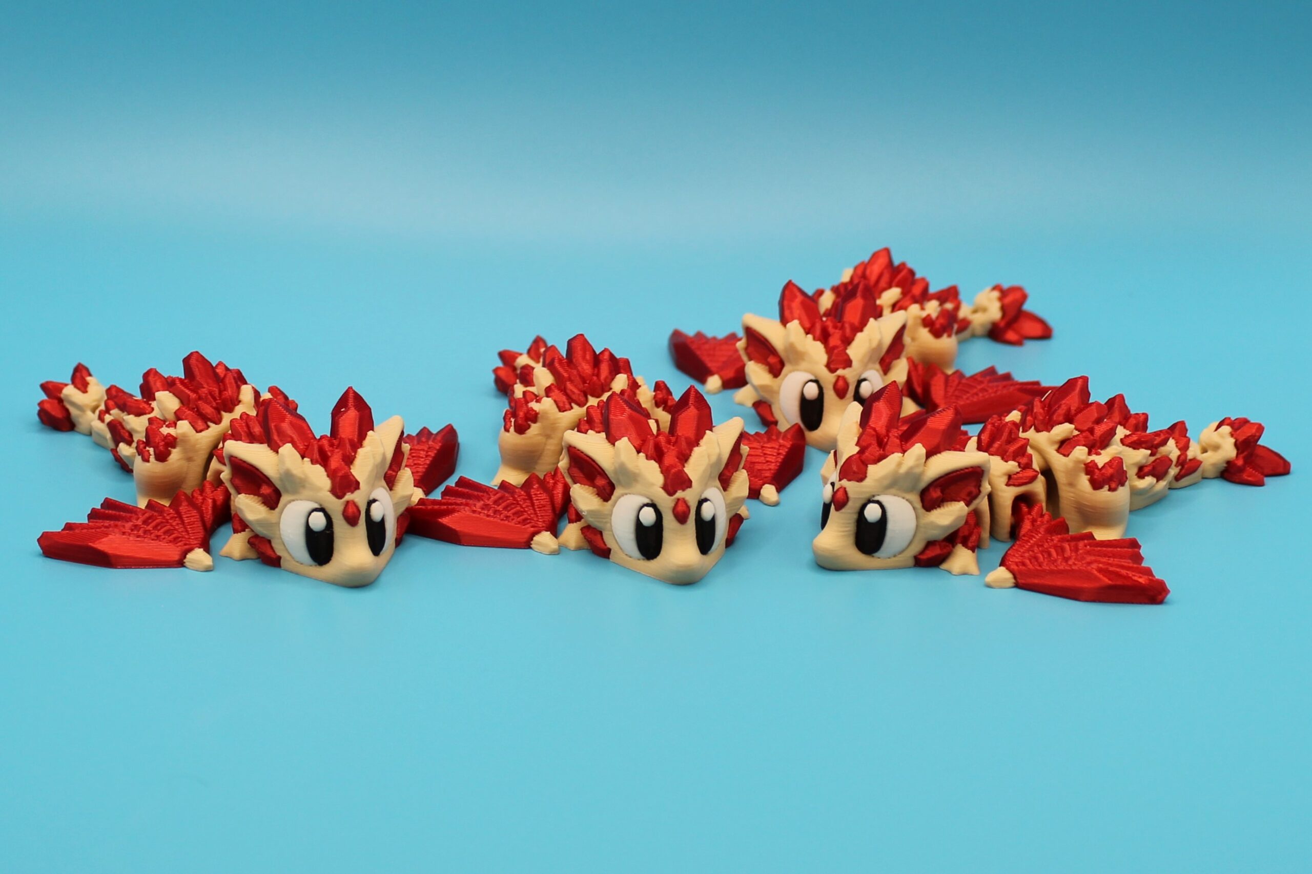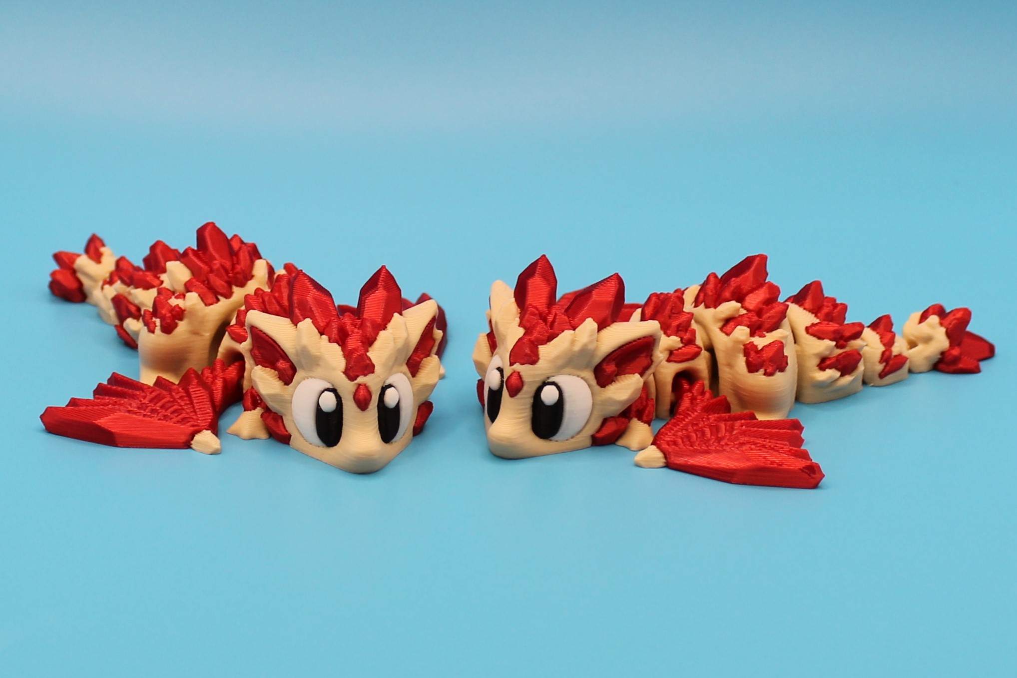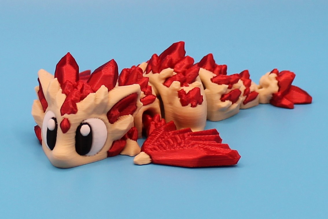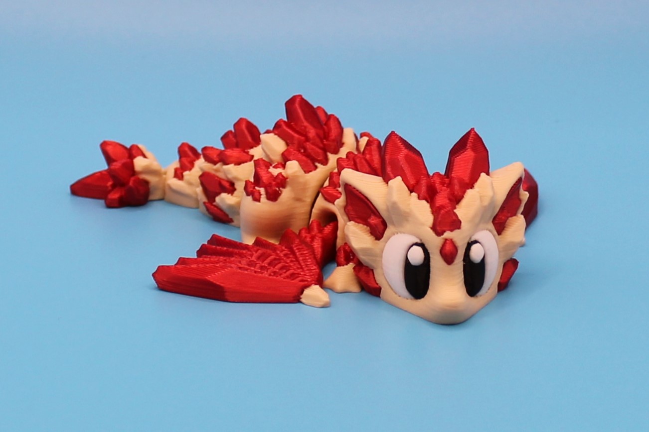 Introducing ‘Ruby’ the Crystal Dragon by 3DGOB! This adorable dragon figurine is the perfect addition to any fantasy lover’s collection. With its vibrant red and beige colours, intricate scales, and big eyes, Ruby is sure to bring a smile to your face. Let this charming dragon guard your desk or bookshelf in style!