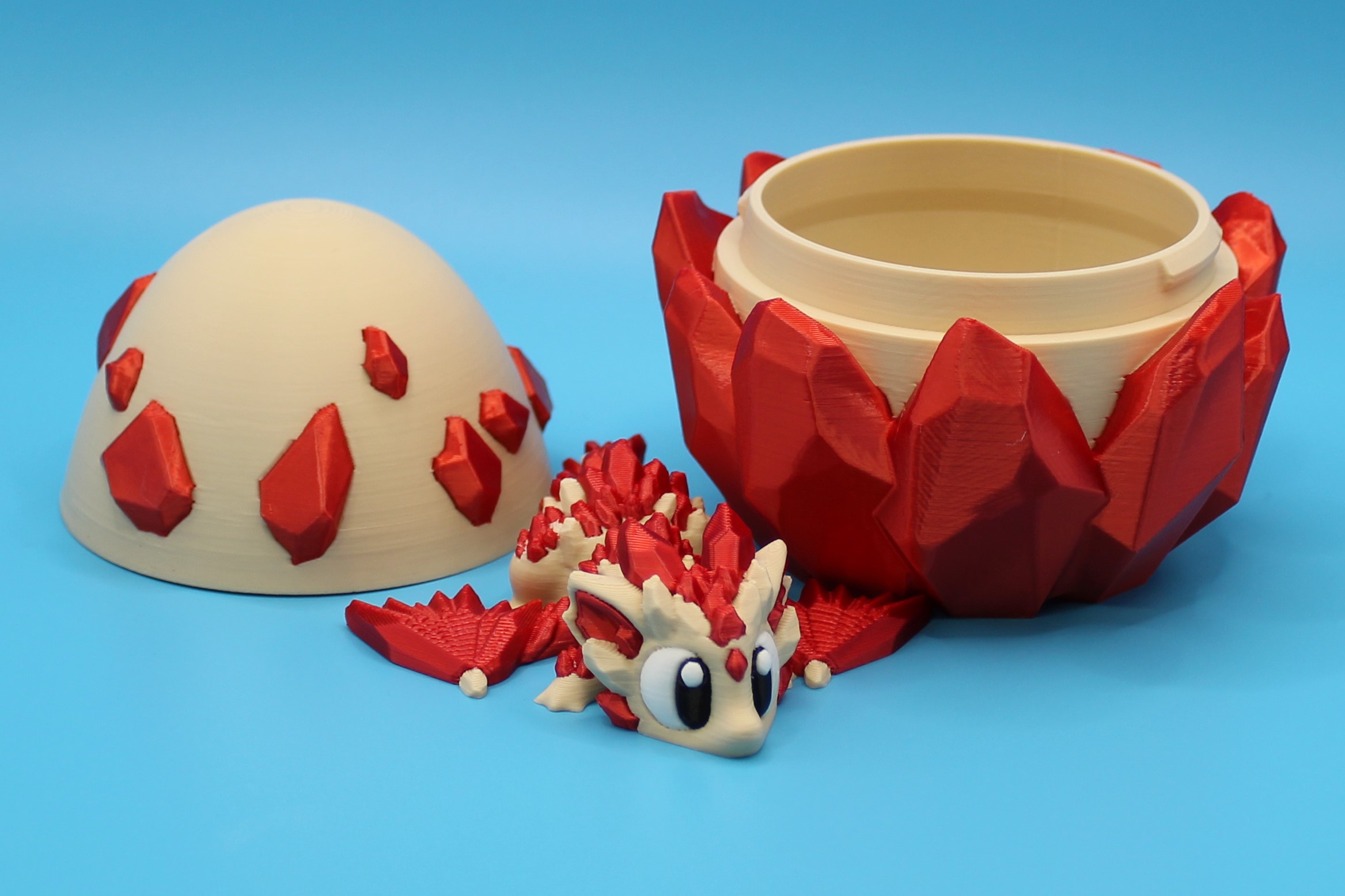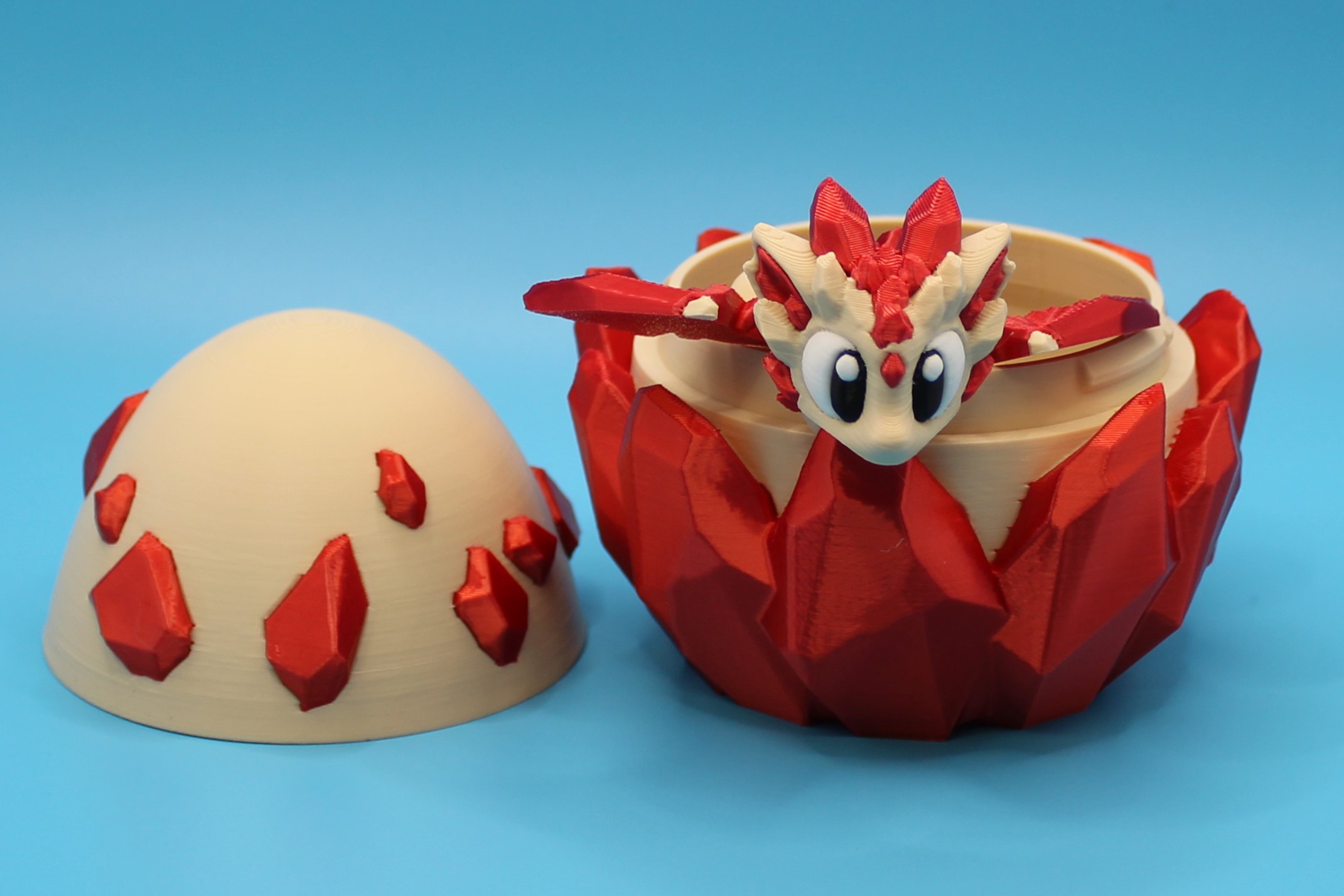 Introducing ‘Ruby’ the Crystal Dragon by 3DGOB! This adorable dragon figurine is the perfect addition to any mystical collection. With its vibrant red crystal-like structures, Ruby is sure to bring a touch of magic to your home. And don’t forget about the egg-shaped container – it’s the perfect place to keep your tiny treasure safe. So why wait? Bring home Ruby today and let the enchantment begin!
