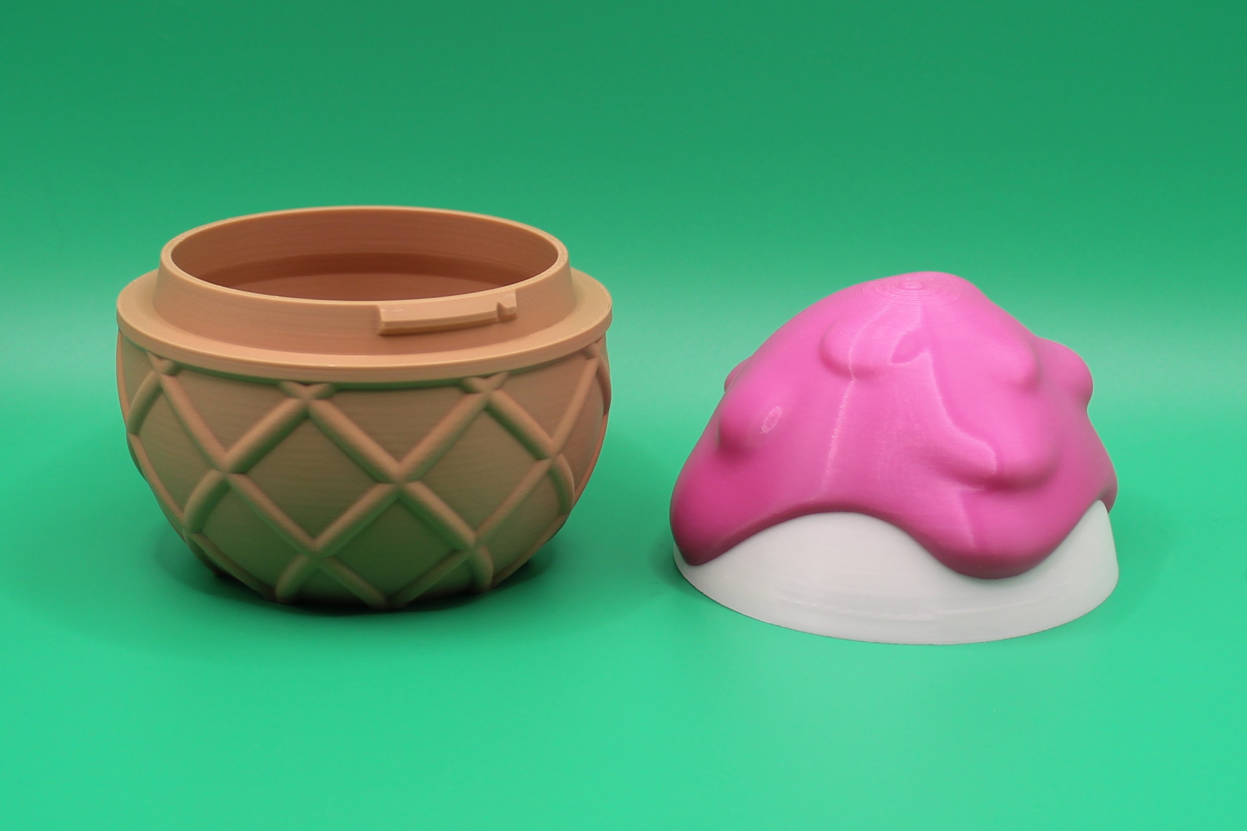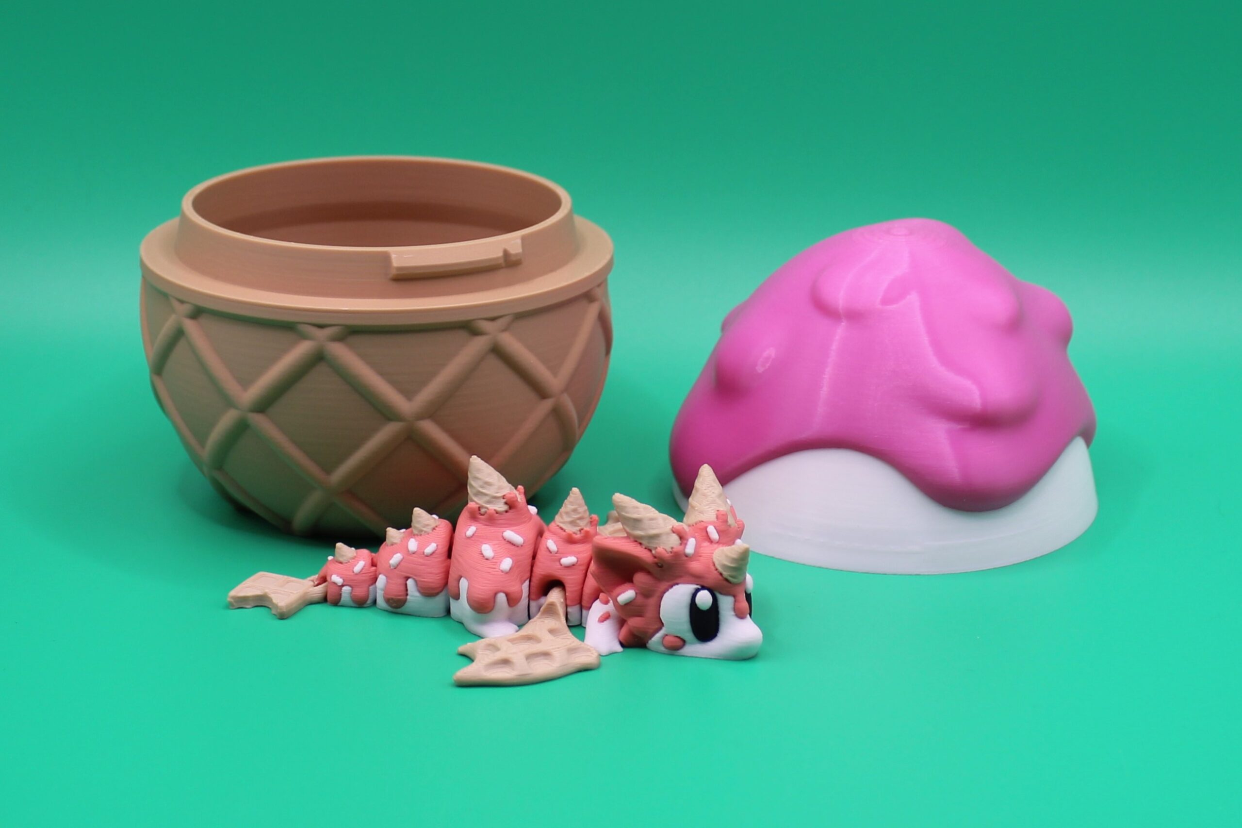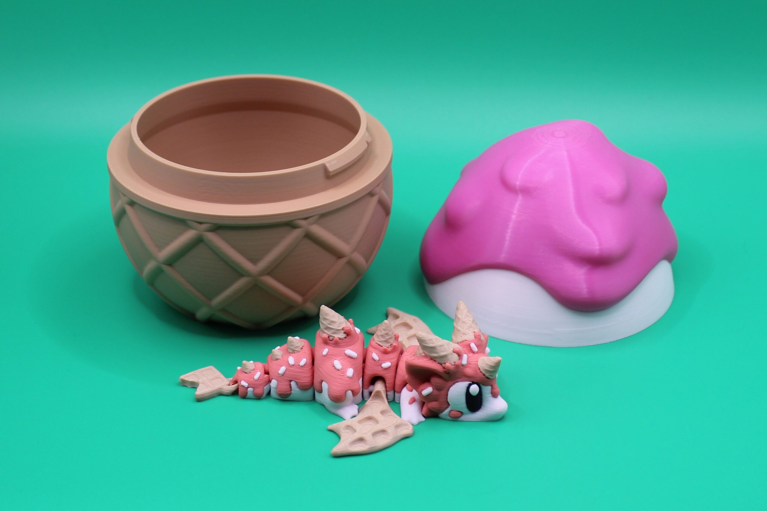 Indulge in a sweet treat with the ‘Sugar Rush’ Dragon Gift Set by 3DGOB! This whimsical gift set features a 3D printed egg container shaped like an ice cream cone, complete with a cute dragon figurine painted in delicious pink and white colours. Perfect for any dragon lover with a sweet tooth, this set is sure to bring a smile to their face. Get ready for a sugar rush like no other with this adorable and unique gift!