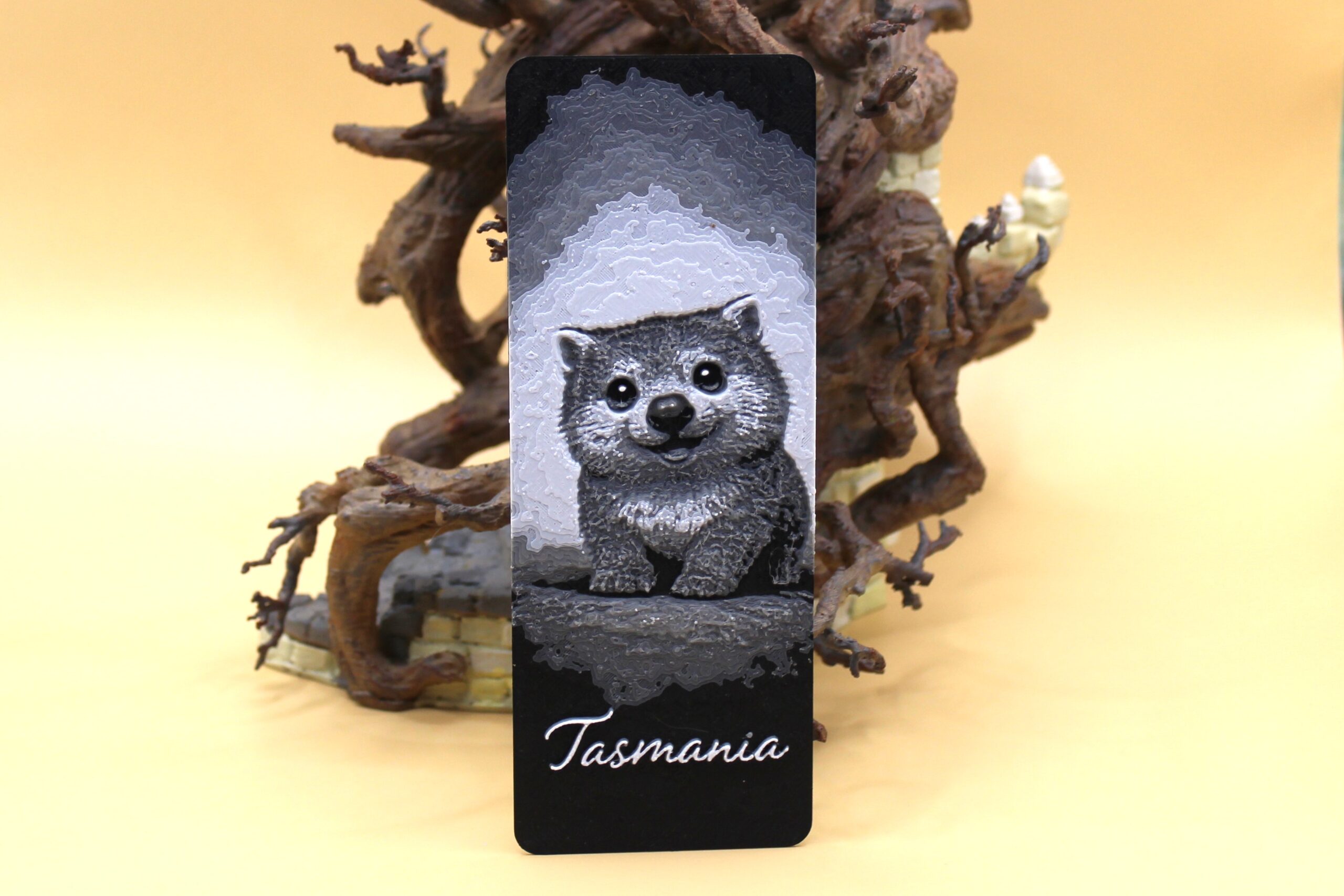 Introducing our new range of Tasmania Bookmarks, designed and manufactured in Deloraine, Tasmania. These amazing Tasmanian Bookmarks have been designed digitally by us, then crafted in a special design studio that can replicate the image into 3D design using data around the opacity or transparency of filament from the extensive Squiz 3D filament library. In short, it takes many programs to be able to create these beautiful Bookmarks.