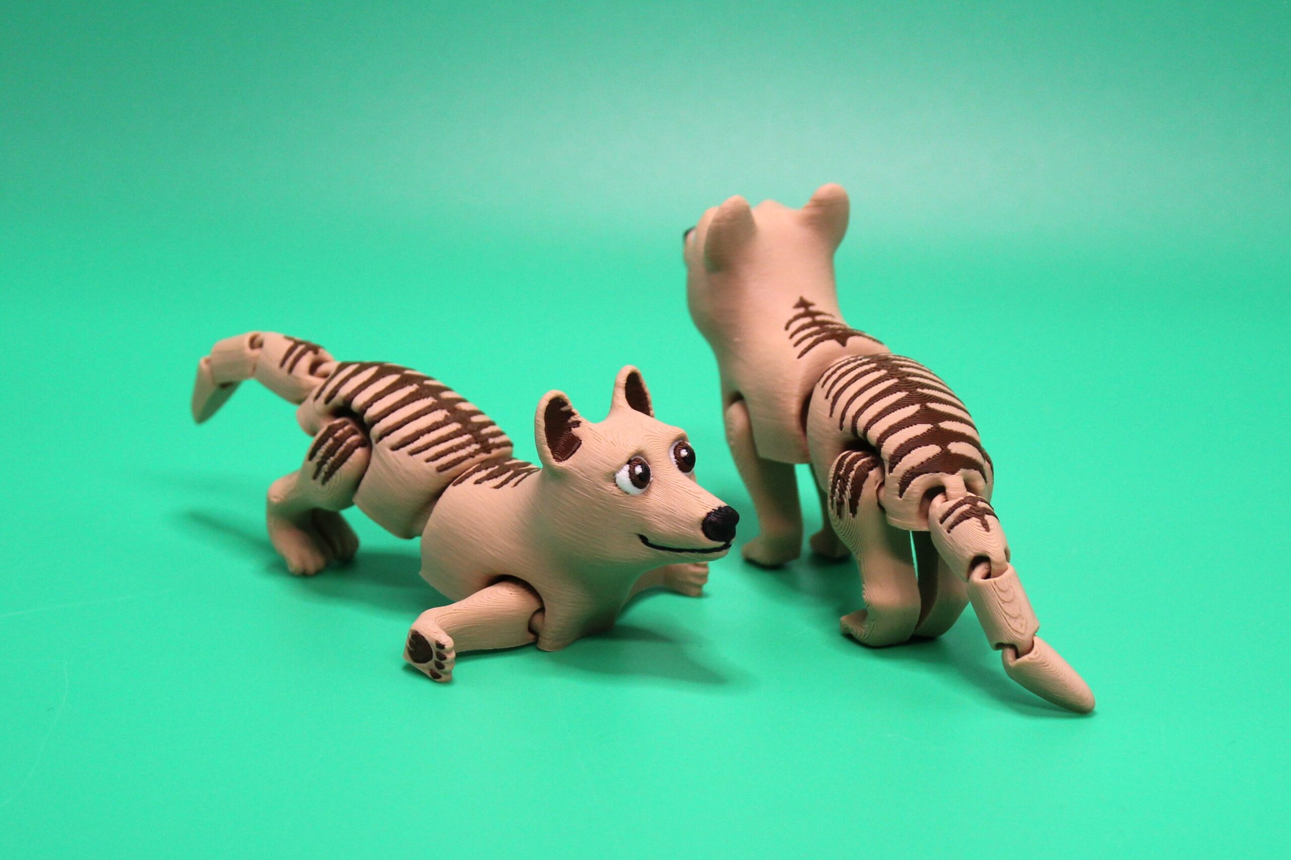 Introducing our second Tasmanian flexi-animal, the Thylacine, designed and manufactured in Deloraine, Tasmania. These amazing Tasmanian Tigers were the highest on my list of designs, so I’ve done the best I can do to bring this beautiful mammal out of extinction, and into your hearts and homes. It was only natural that our beloved Tassie Tiger had to be the next in our new range that will be dedicated to Tasmanian animals. Please welcome the Tasmanian Tiger to our product range, and grab this little ‘Thylacine’ Pocket Pet today!
