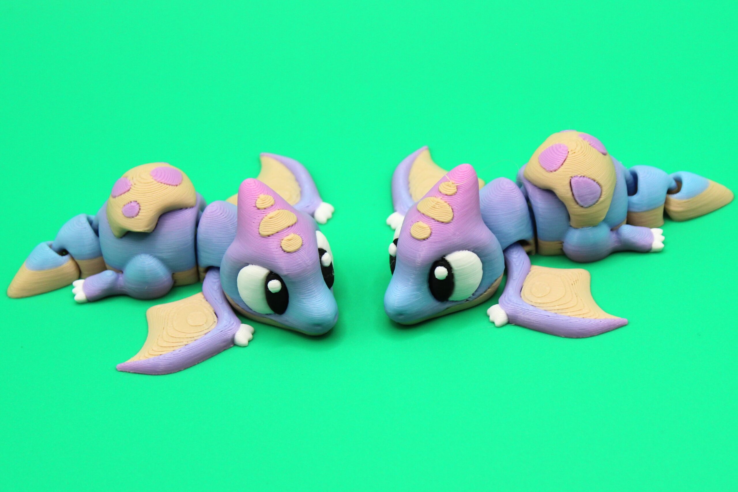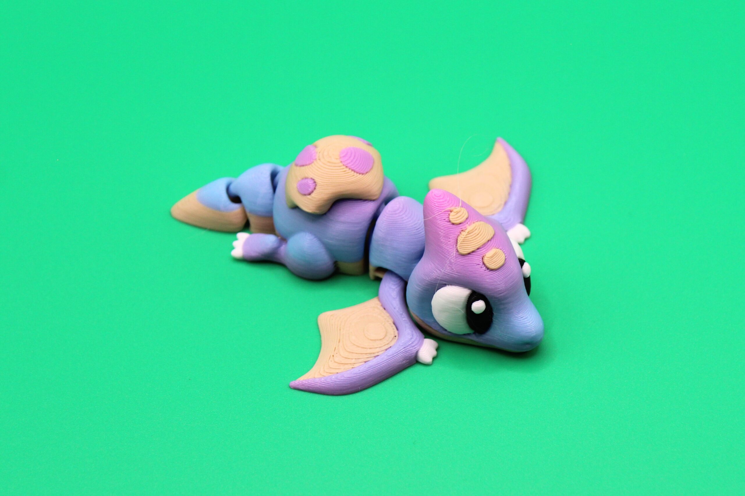 Introducing ‘Terry’ the baby Pterodactyl by 3DGOB – the cutest dragon flexi-toy you’ll ever lay eyes on! With it’s special blue to pink rainbow fade, and beige colours and big, adorable eyes, these little guys are guaranteed to bring a smile to your face. Perfect for any dinosaur lover or collector!