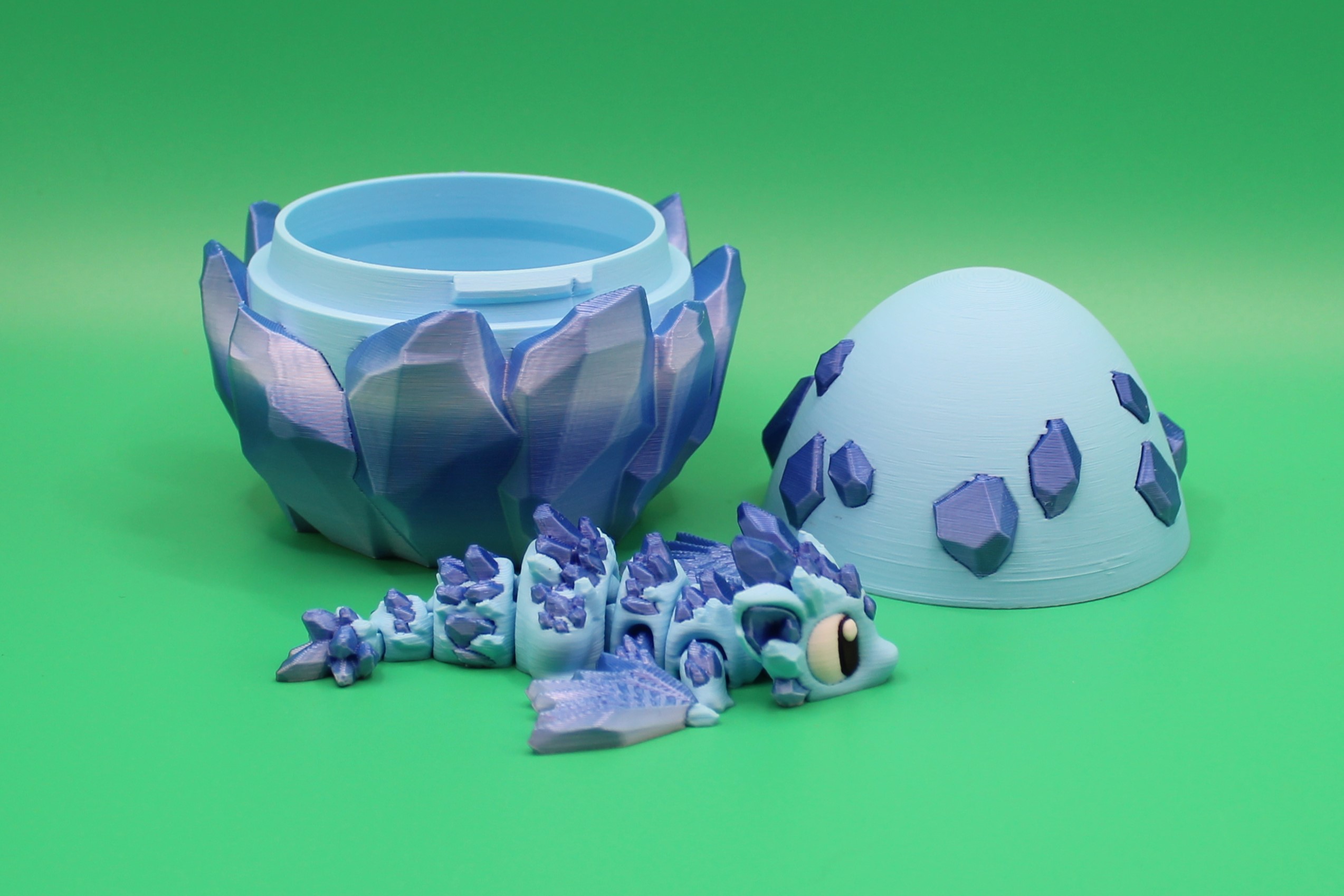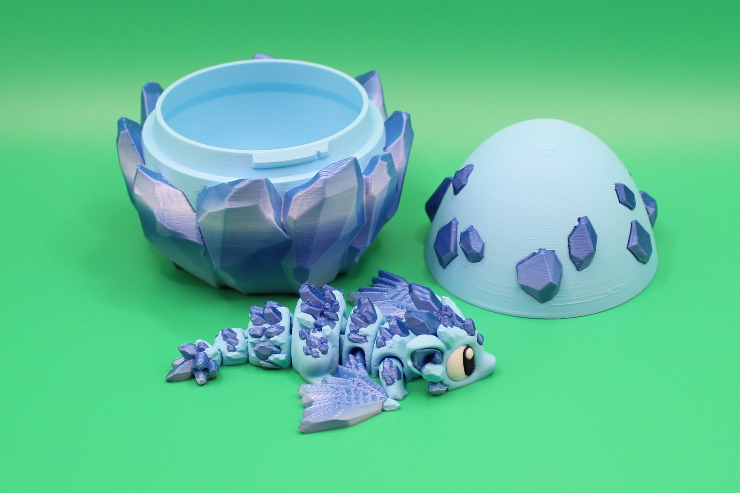 Introducing ‘Topaz’ the Crystal Dragon by 3DGOB! This mystical creature is not your average dragon – it’s a stunning 3D-printed masterpiece in vibrant blue and blue silk hues. Topaz is accompanied by its egg-shaped container with added topaz crystals, adding a touch of whimsy to any space. Perfect for dragon enthusiasts and fantasy lovers alike, this figurine will surely spark joy and conversation. Get your hands on ‘Topaz’ and bring a touch of magic into your home today!