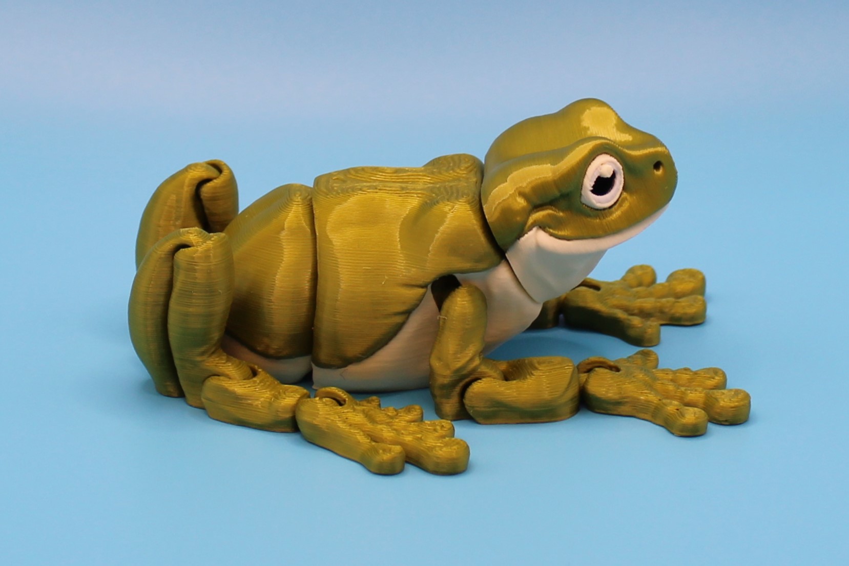 Introducing the Whites Tree Frog by MatMire Makes! This adorable 3D printed frog model, in three stunning Silk colours, is perfect for any frog lover’s collection. With its detailed texture and reflective surface, this little guy is sure to hop right into your heart. Get yours today from us at Squiz 3D!